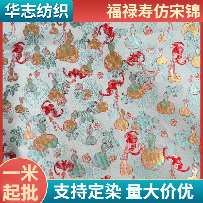 仿三五织锦缎是在经面缎上起三色以上纬花的中国传统丝织物。织锦缎是19世纪末在中国江南织锦的基础上发展而来的,表面光亮细腻,手感丰厚,色彩绚丽悦目。主要用作女用服装,也常用于制做领带、床罩、台毯、靠垫等装饰用品。
