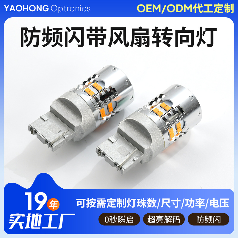 国境を越えた同タイプのled自動車ランプ黄光F14-T20/S25-40SMDファン付きステアリングランプのストロボ防止