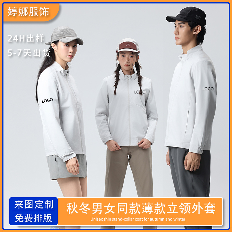 2025秋冬簿款外套防风拉链立领风衣夹克印LOGO定工作服团体服工厂