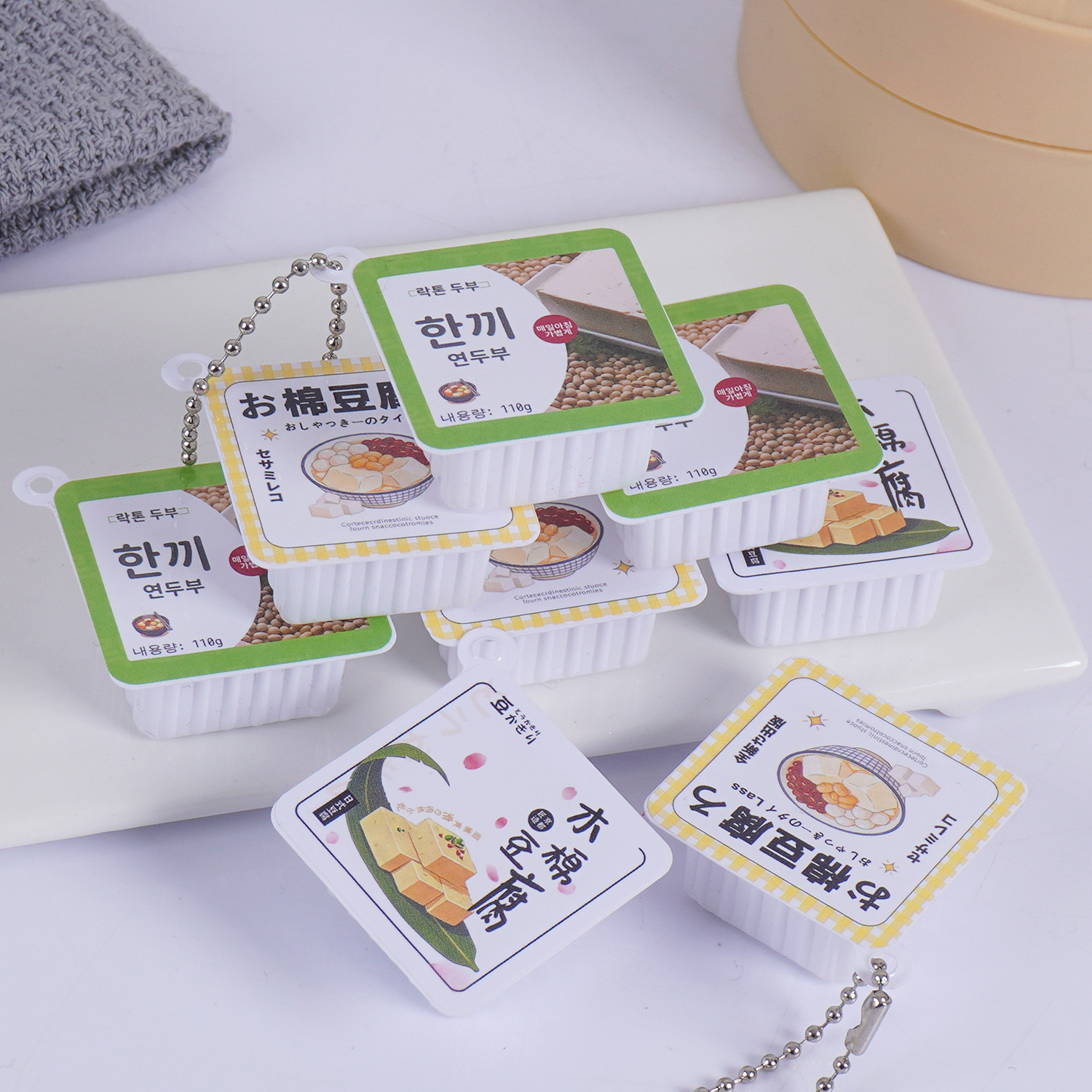 仿真食物日本豆腐钥匙扣内置快弹豆腐捏捏日韩食玩盒装豆腐挂件