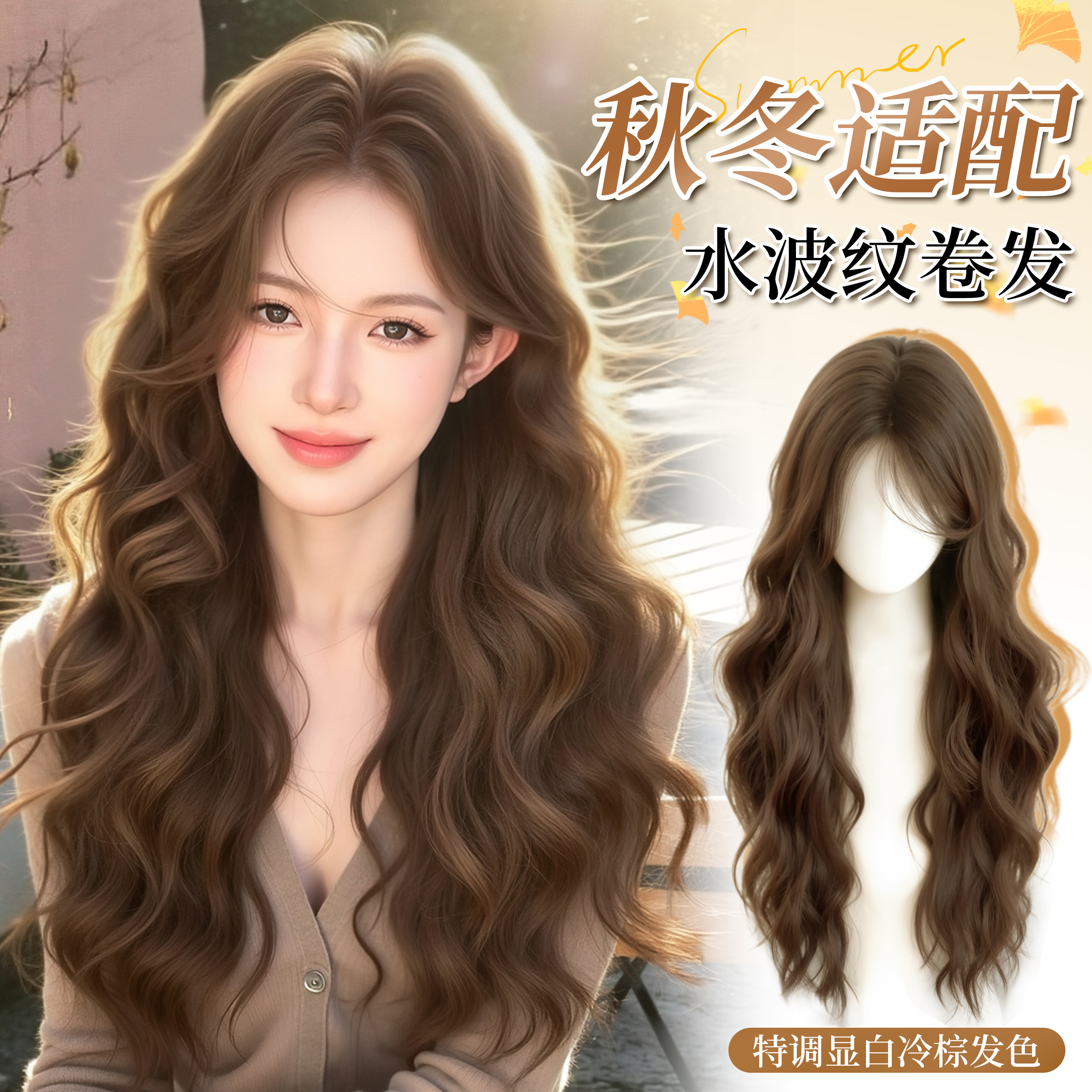 假发头套全头蓬松空气感长卷发慵懒水波纹自然前额仿真发整顶