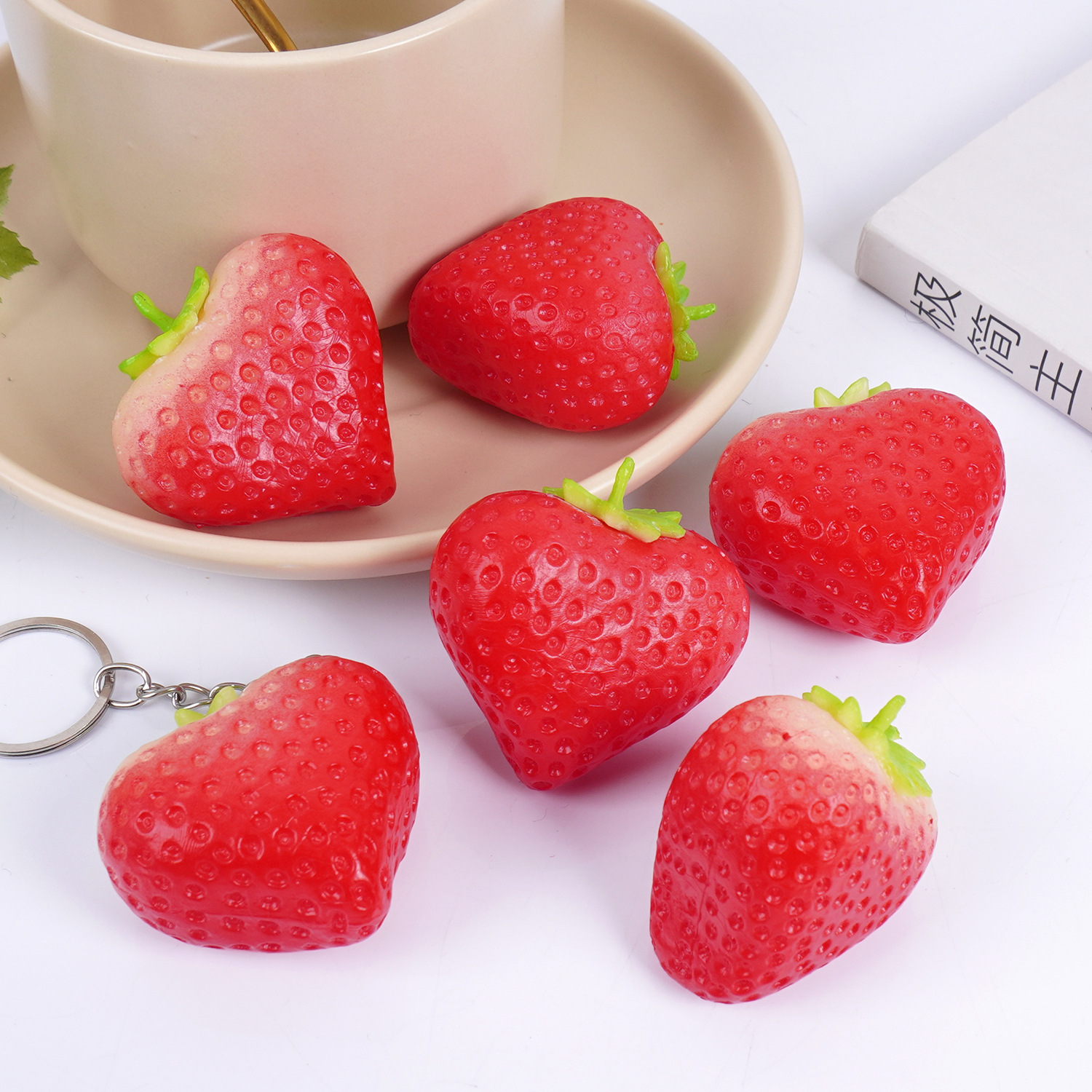 仿真水果心形草莓钥匙扣卡哇伊爱心红草莓包包挂件假食物草莓玩具