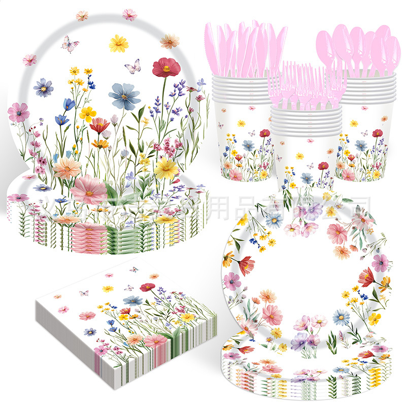 新品花パーティーお诞生日テーマセット使い舍てティッシュペーパーカップ纸トレイパーティー野花饰り用品