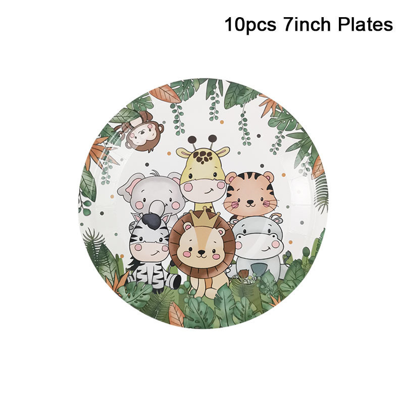 ハワイワイルドワンジャングル動物狩猟誕生日パーティー食器使い捨て紙皿ティッシュペーパーカップセット