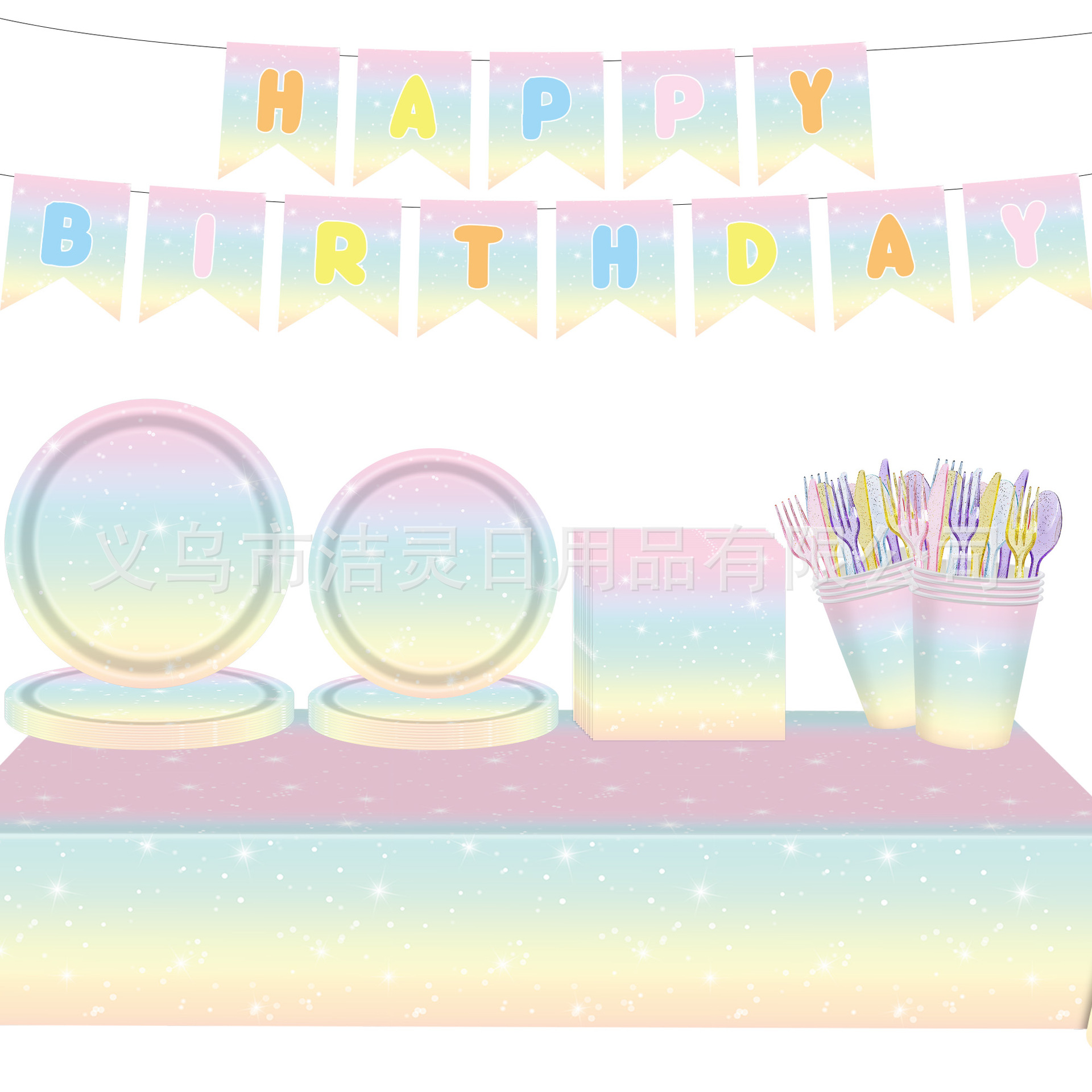 新品レインボーグラデーション诞生日パーティーテーマセット使い舍て皿纸コップペーパータオルpeテーブルクロス装饰用品