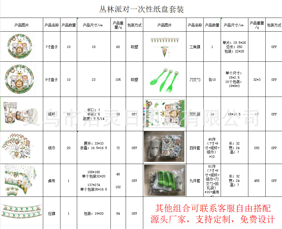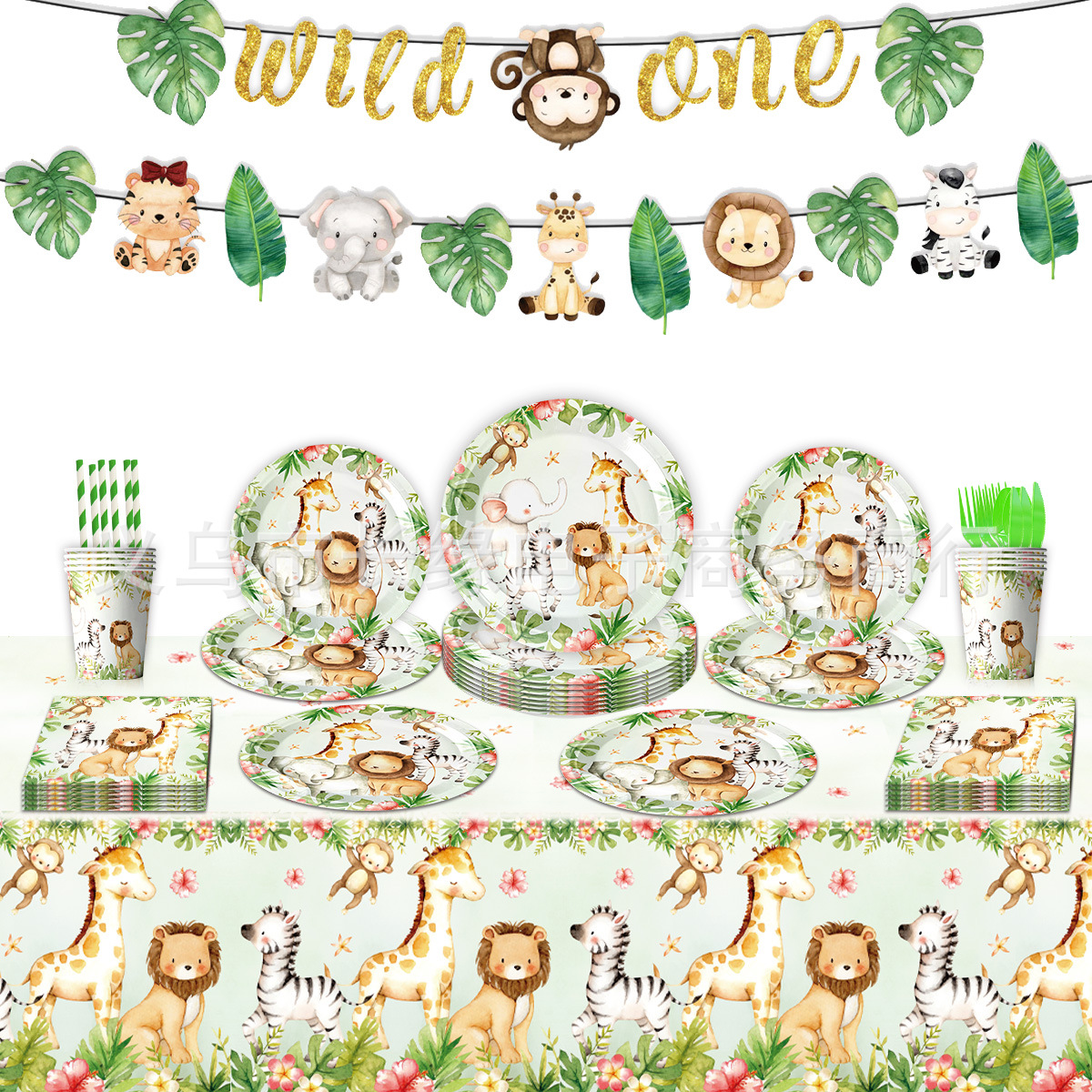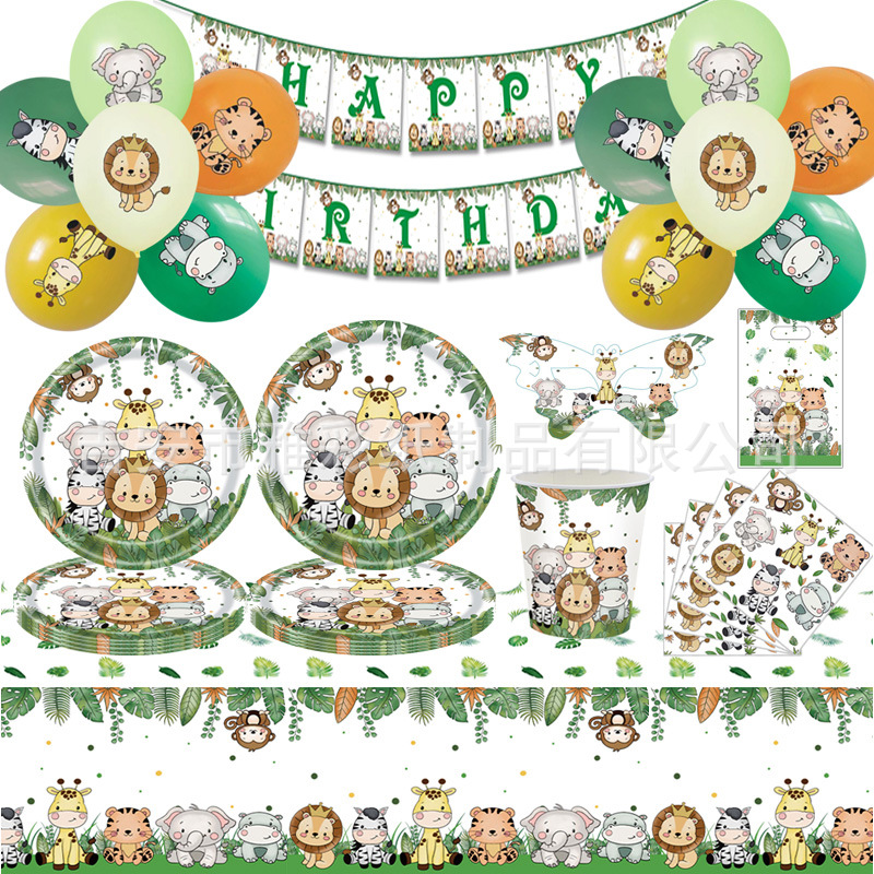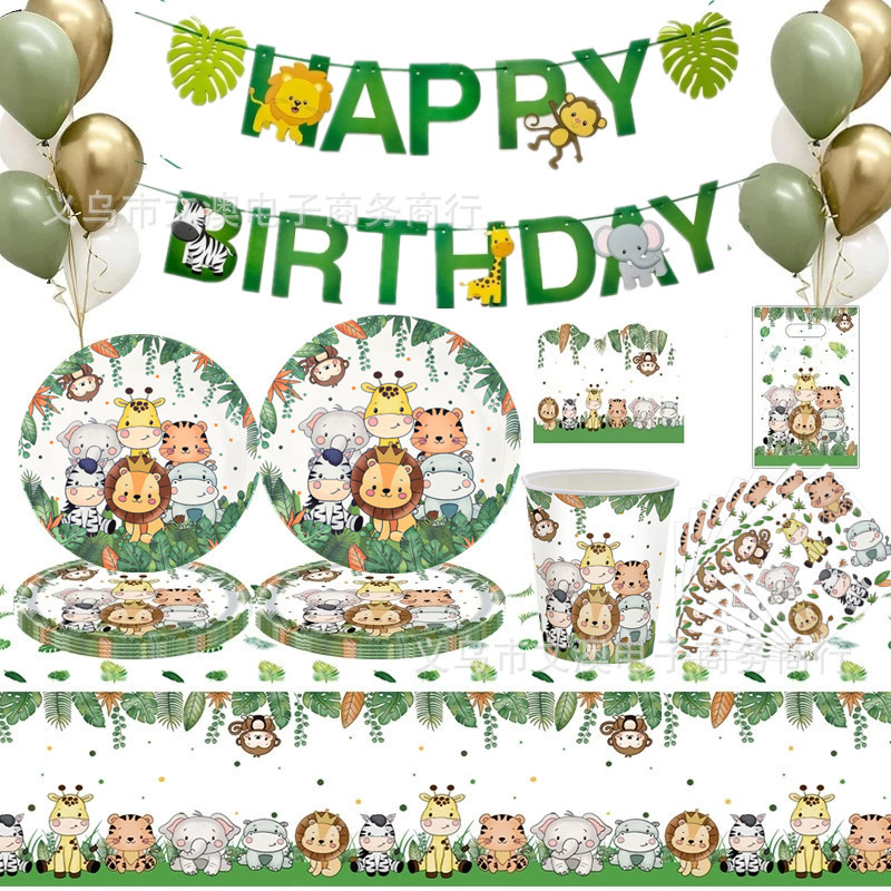 跨境丛林动物生日派对装饰动物园派对用品纸盘纸巾纸杯桌布生日节