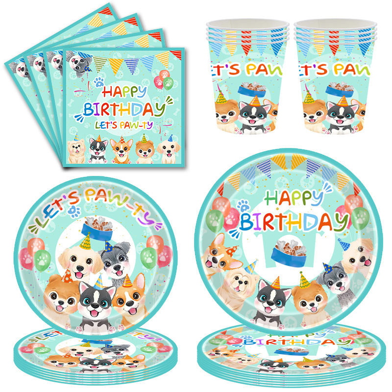 新品スポットグリーン犬お誕生日パーティーパーティーアレンジ用品ティッシュトレイセット使い捨て装飾品