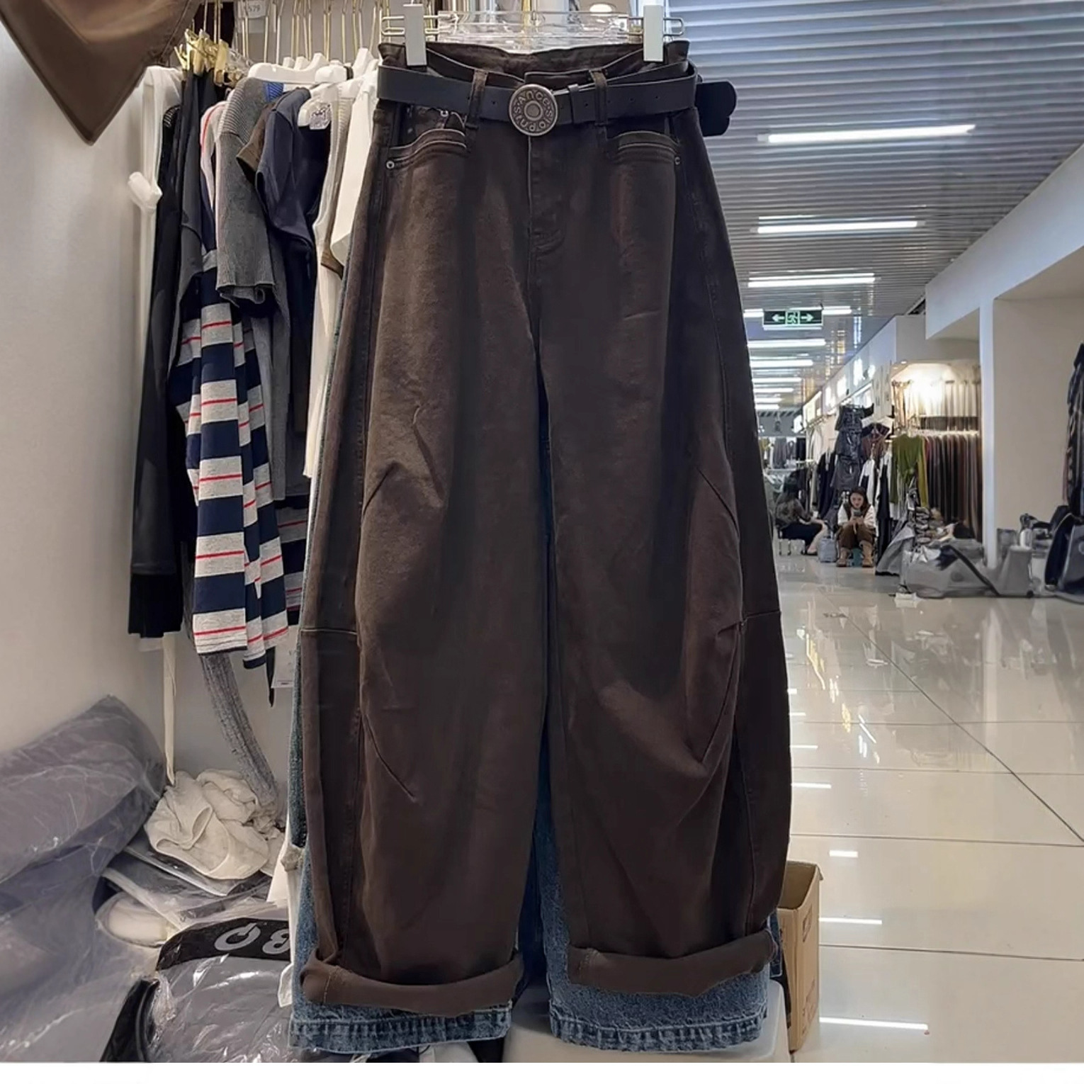 2025秋冬新款高腰复古大码弯刀牛仔裤女胖mm韩版显瘦宽松阔腿长裤