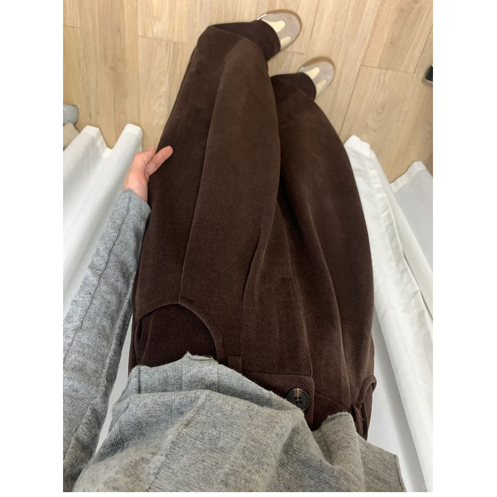 欧品ファッション2024秋冬茶色の大きいサイズのレトロなコーデュロイのハーレムのズボンは肉を遮って痩せています。