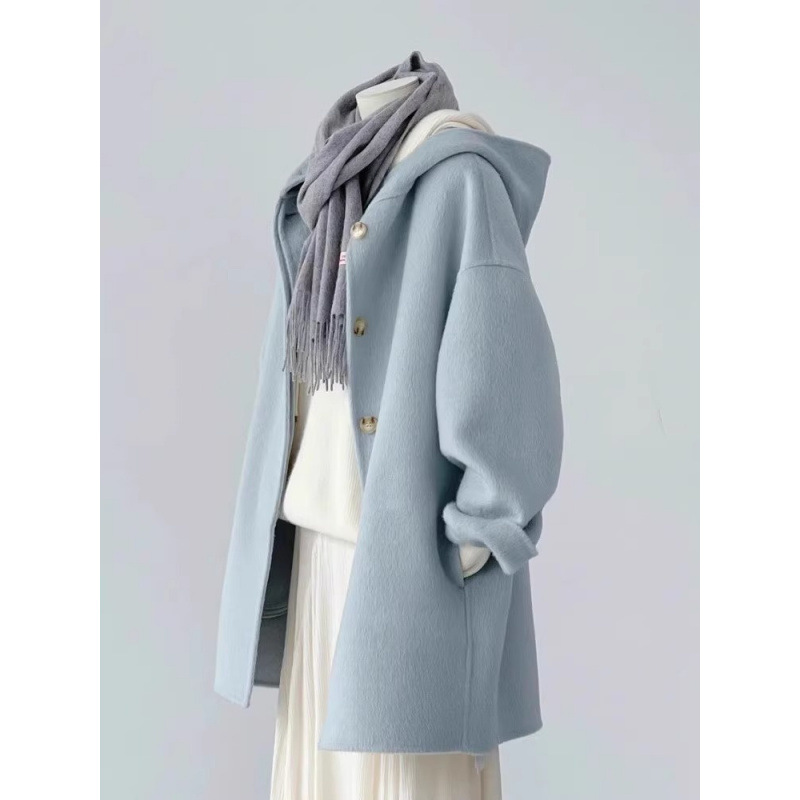 2024年の韓国版秋冬服の小さい子のラシャのコートの青い香風の名媛の毛のコートの女性の短いタイプ
