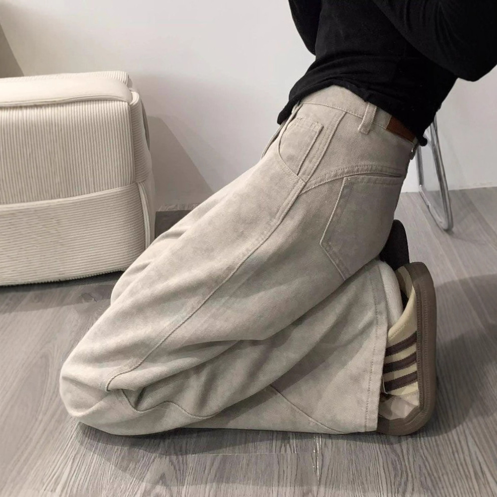 韩系小众设计感水洗牛仔裤女chic潮流宽松高腰直筒显瘦ins阔腿裤