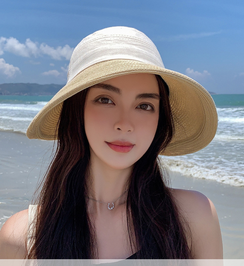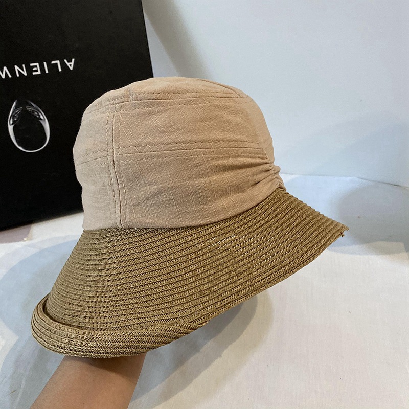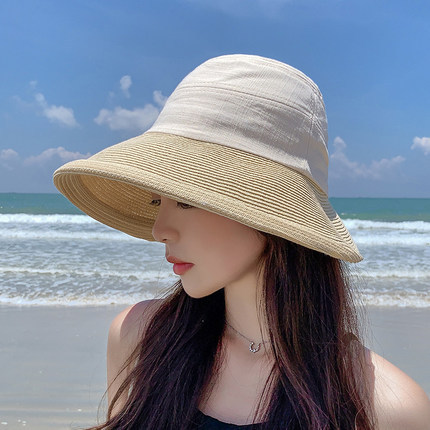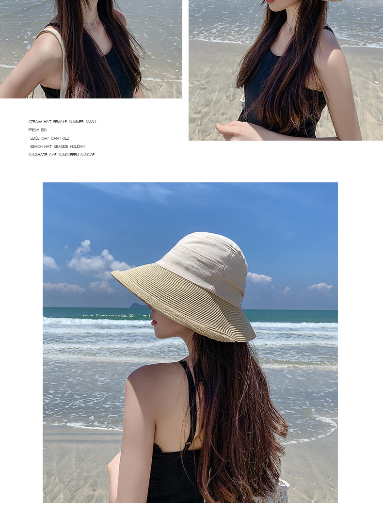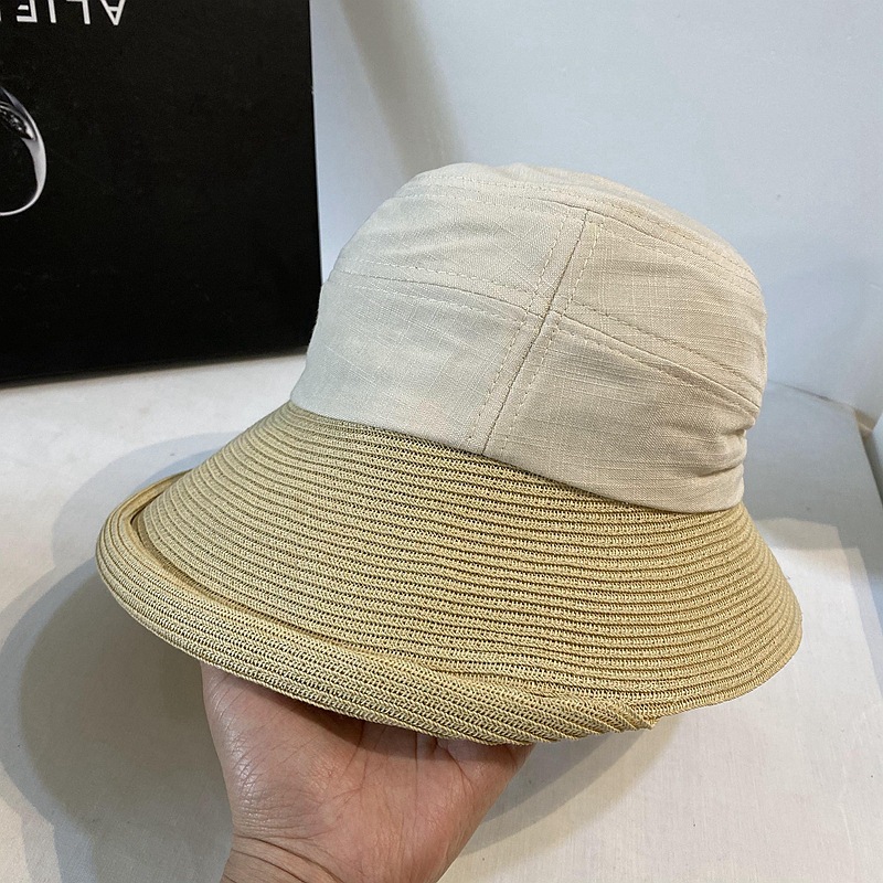 日系文芸巻き縁の不規則な麦わら帽子の日よけ帽子の日よけ帽子のファッション的な春夏の女性の旅行の布の草はつなぎ合わせます。