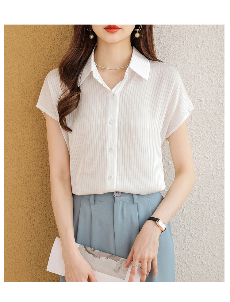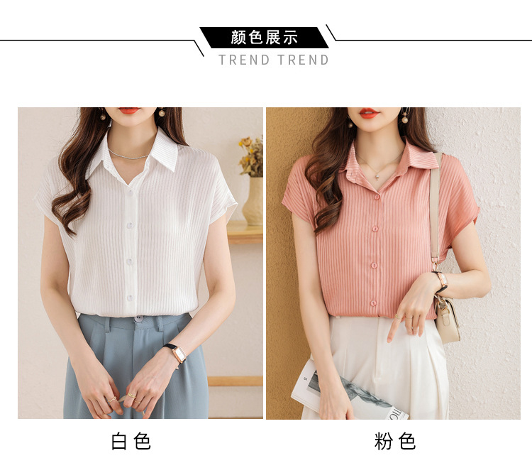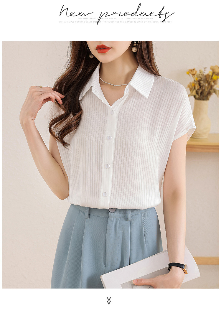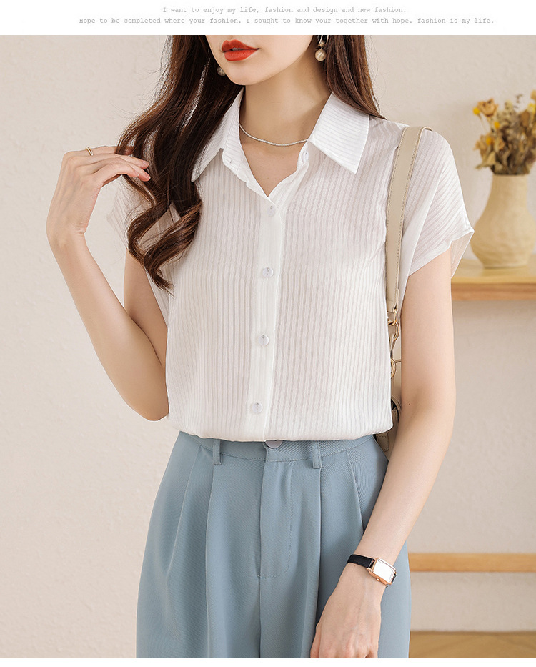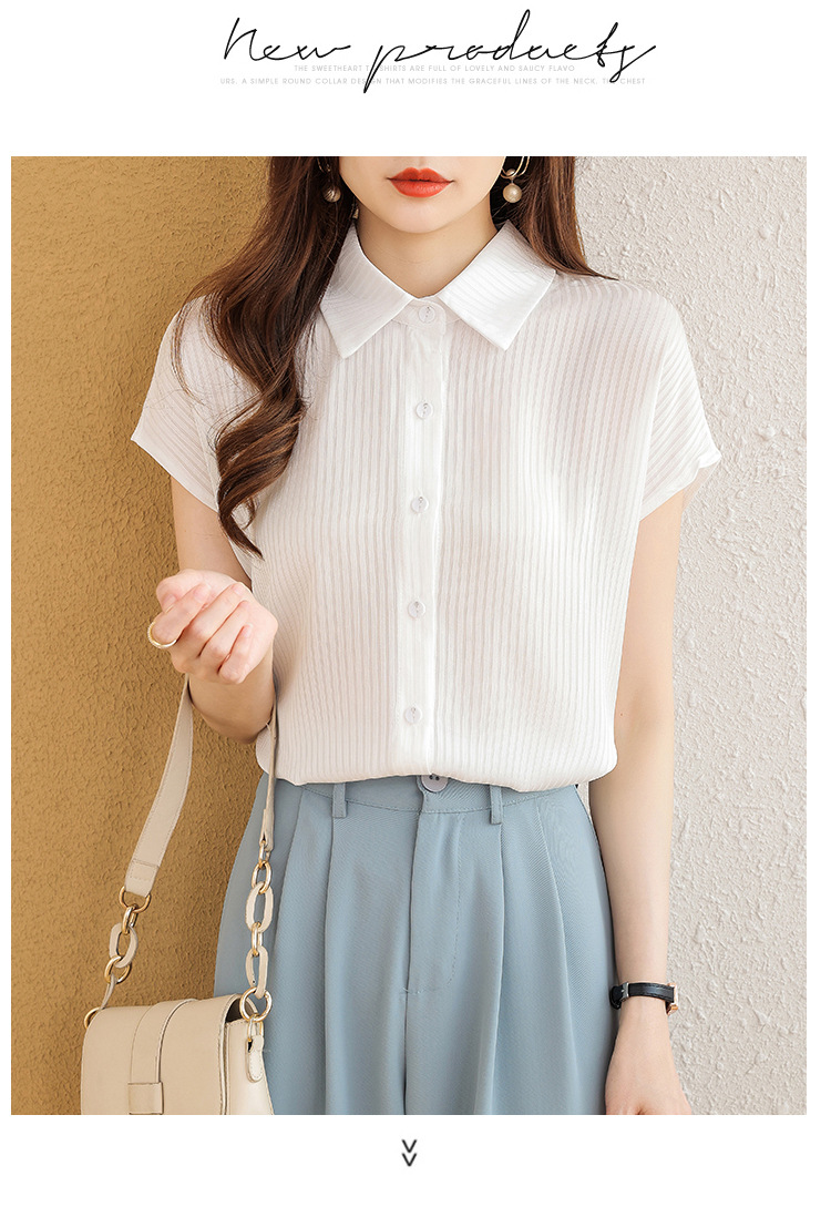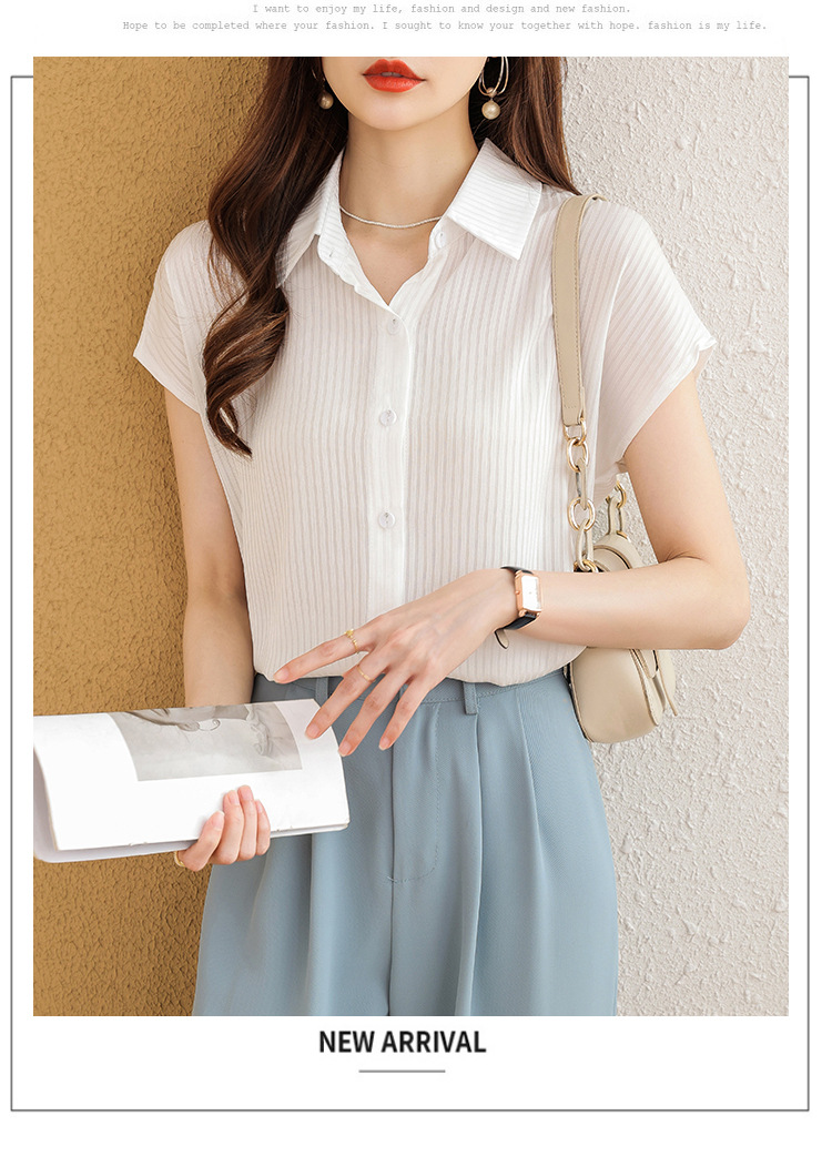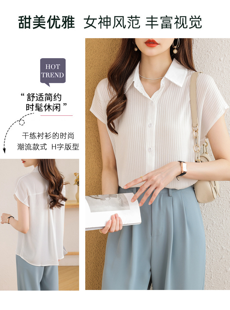 実写2023夏の新型垂れ下がった感じの白い半袖のシャツの女性の軽薄な修身はやせているolの独特な上着を現します。