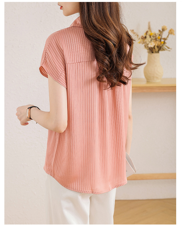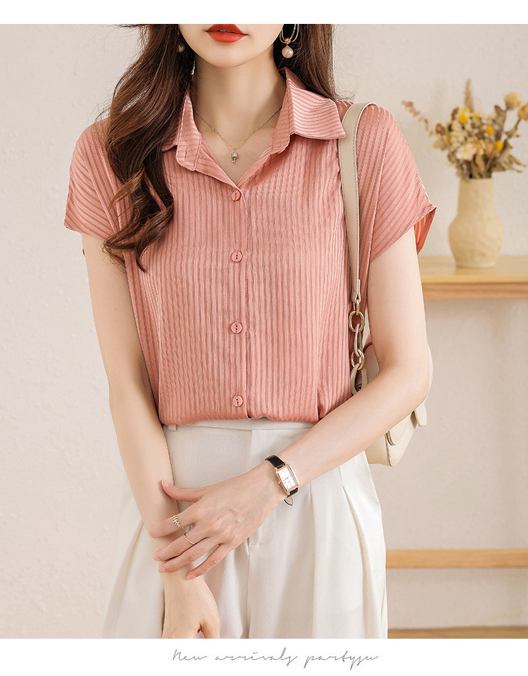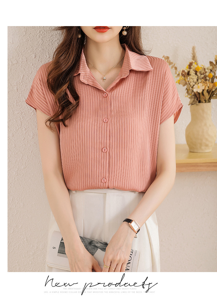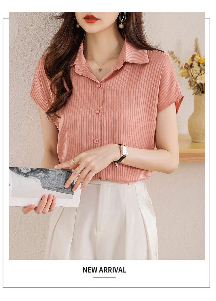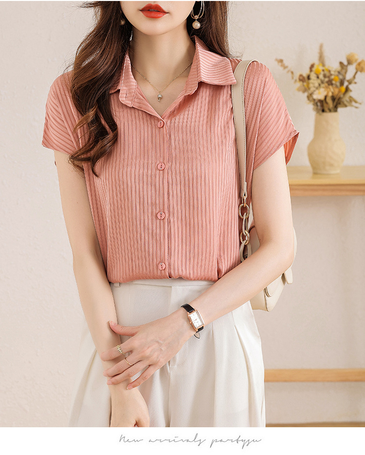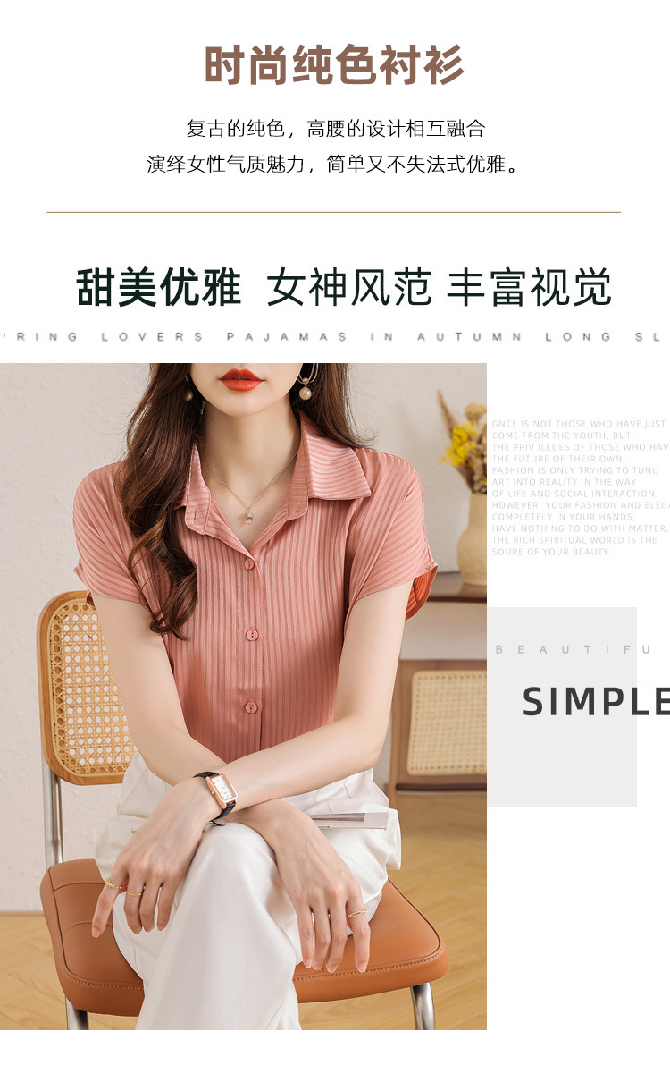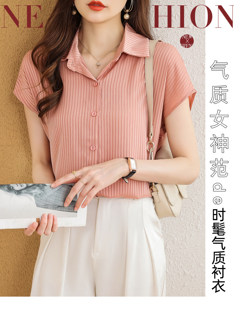 実写2023夏の新型垂れ下がった感じの白い半袖のシャツの女性の軽薄な修身はやせているolの独特な上着を現します。