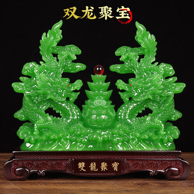 双龍聚宝樹脂工芸品十二生肖龍置物翠玉青龍装飾中国龍招財開業