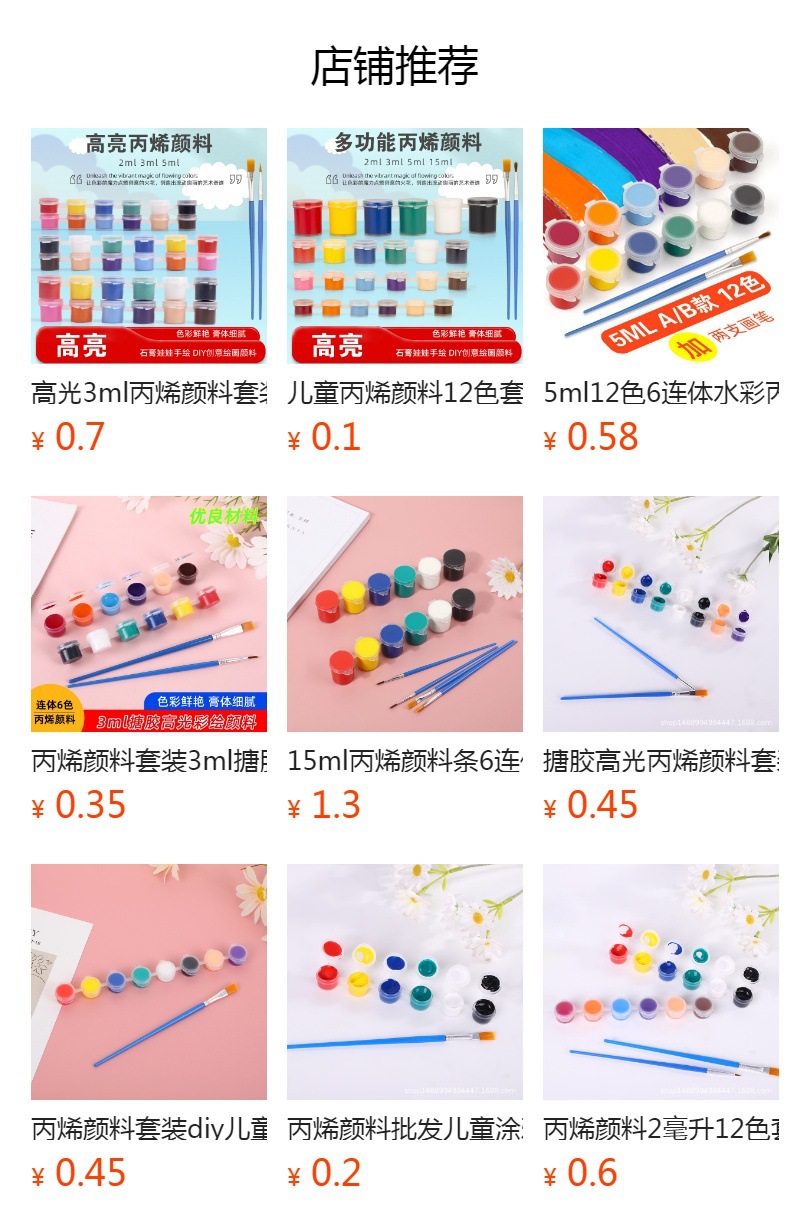 クロスボーダーアクリル塗料ストリップ石膏人形子供diy絵画落書き3ミリリットル12色6連体絵画顔料