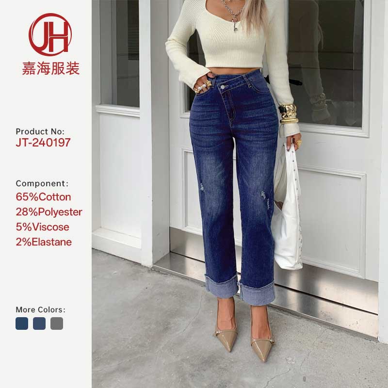 26实拍新款欧美跨境亚马逊速卖通不规则修身水洗女士牛仔裤直筒裤