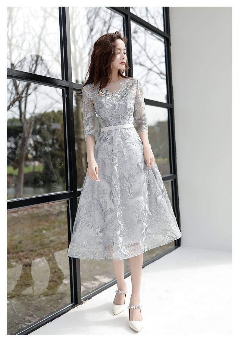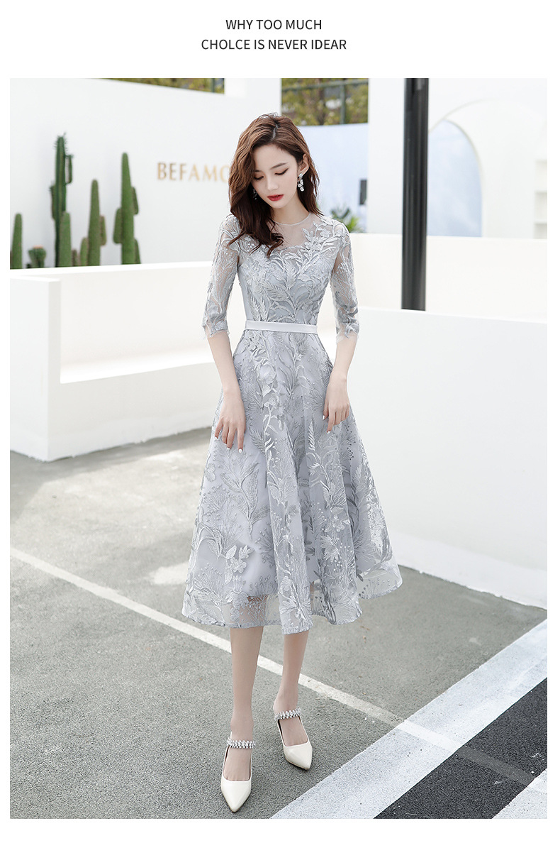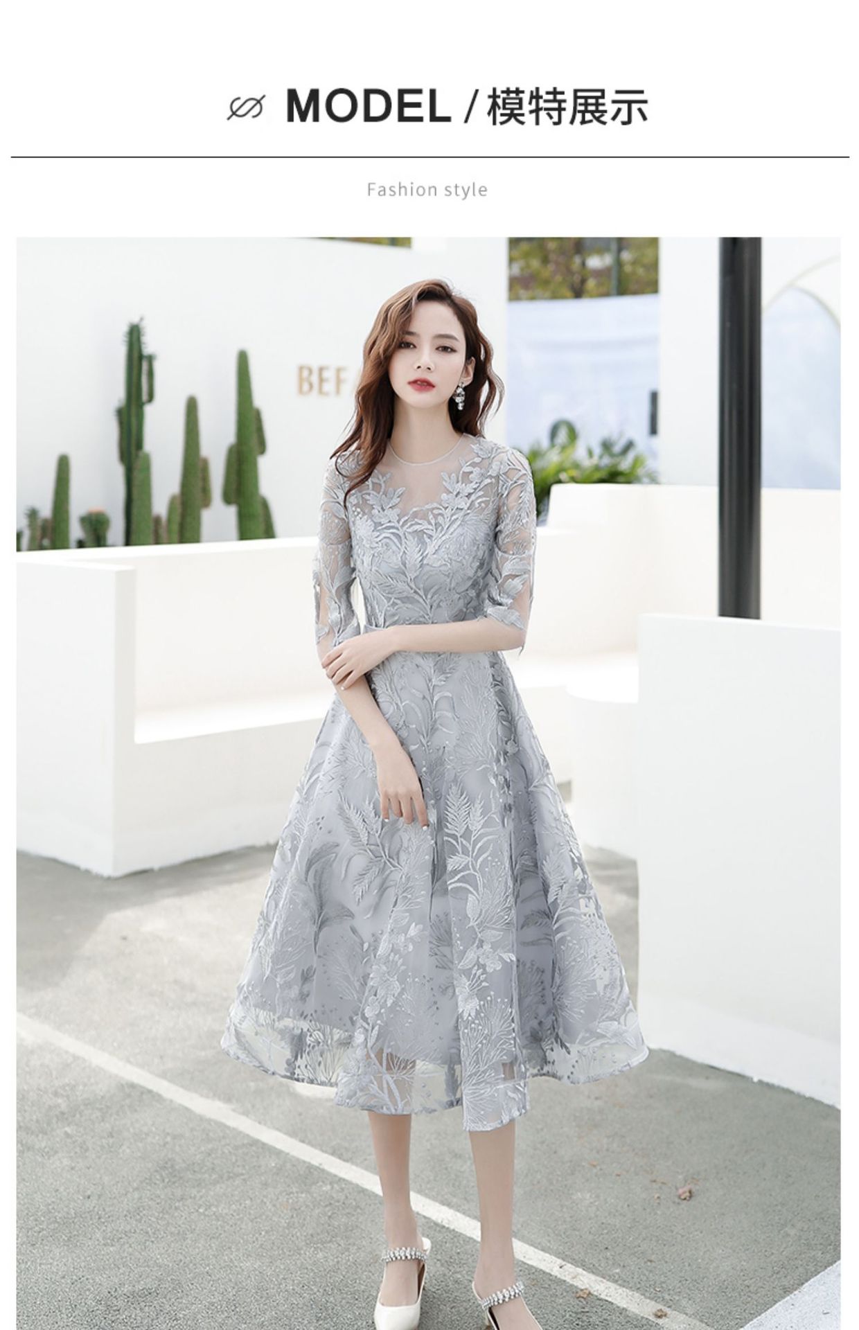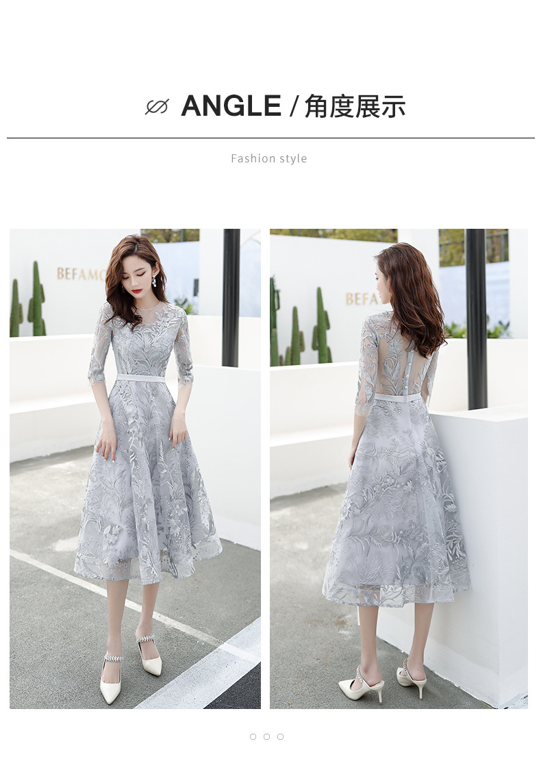 ブライズメイドドレス ミディアム丈 2025年新作 冬 グレー シスタードレス ブライズメイドグループ イブニングドレス スリムフィット イブニングドレス