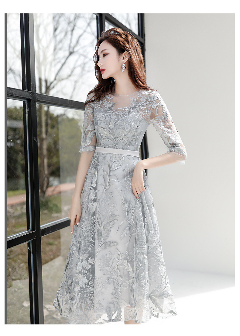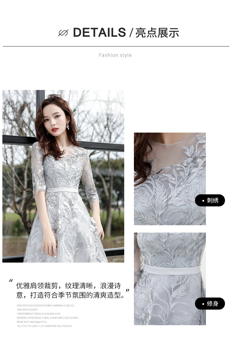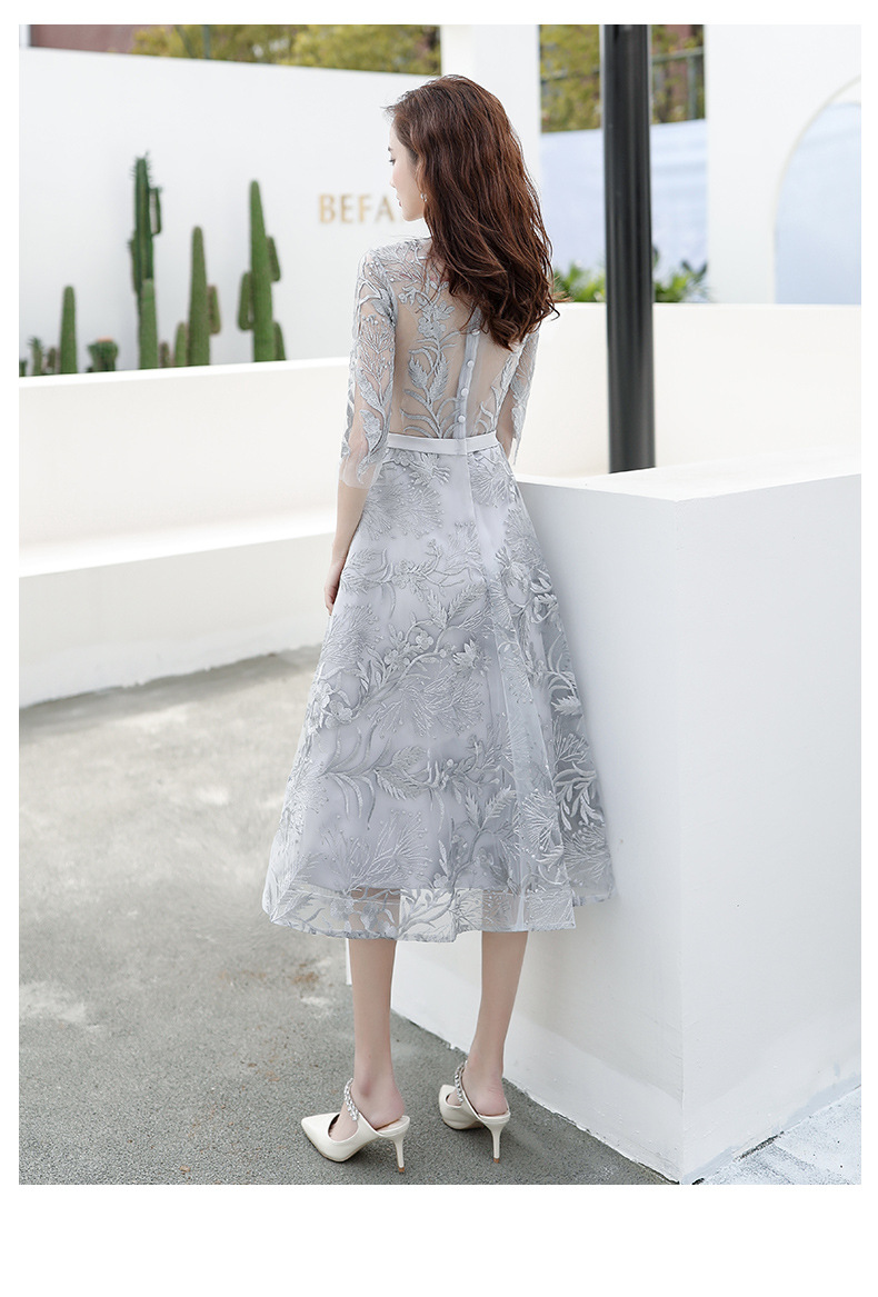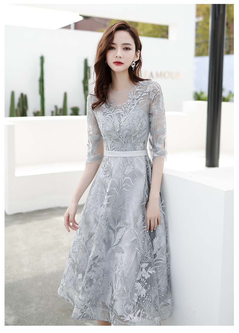 ブライズメイドドレス ミディアム丈 2025年新作 冬 グレー シスタードレス ブライズメイドグループ イブニングドレス スリムフィット イブニングドレス