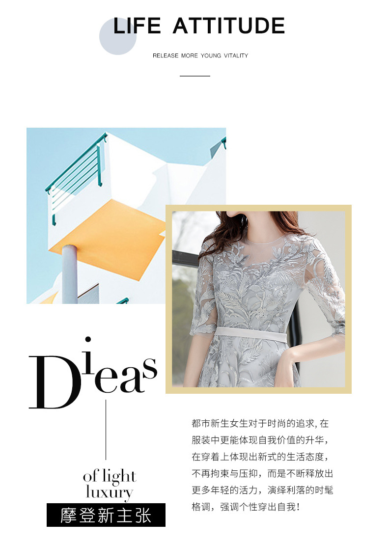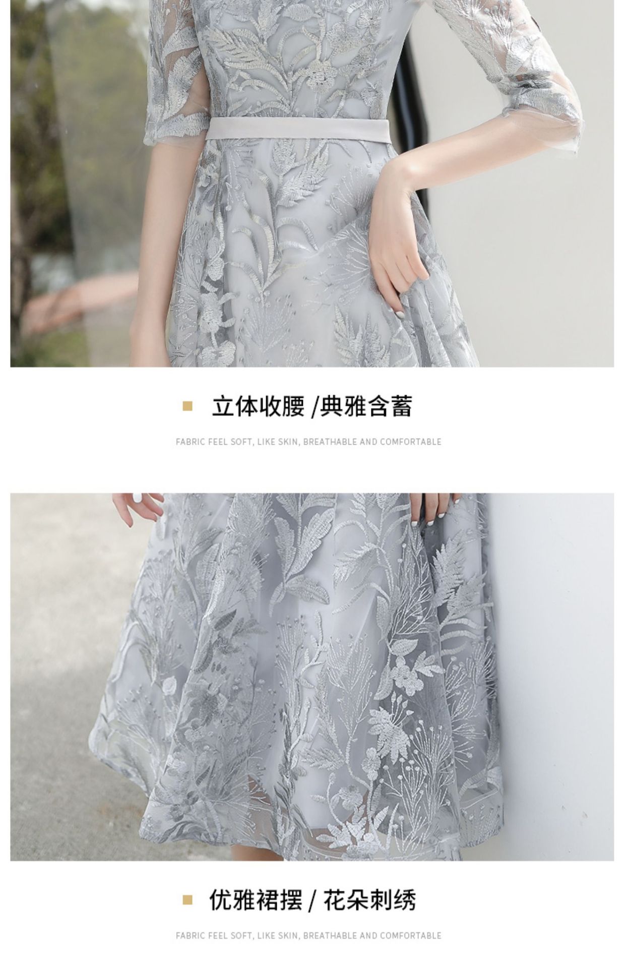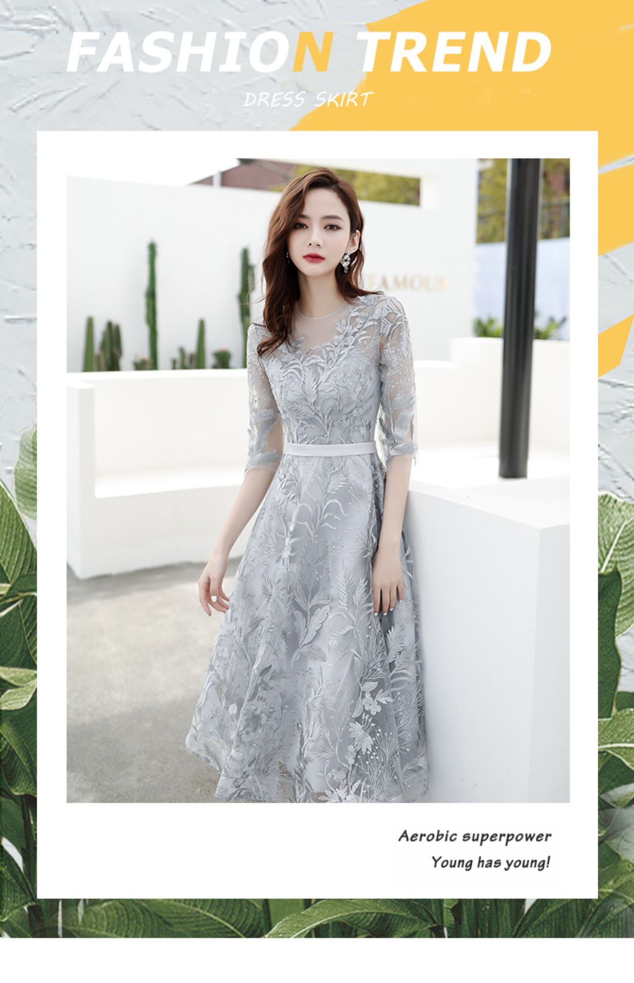 グレーのイブニングドレス 2025年秋新作 日常着としても着られる エレガントなワンピース 軽やかな高級感 アマゾン越境販売