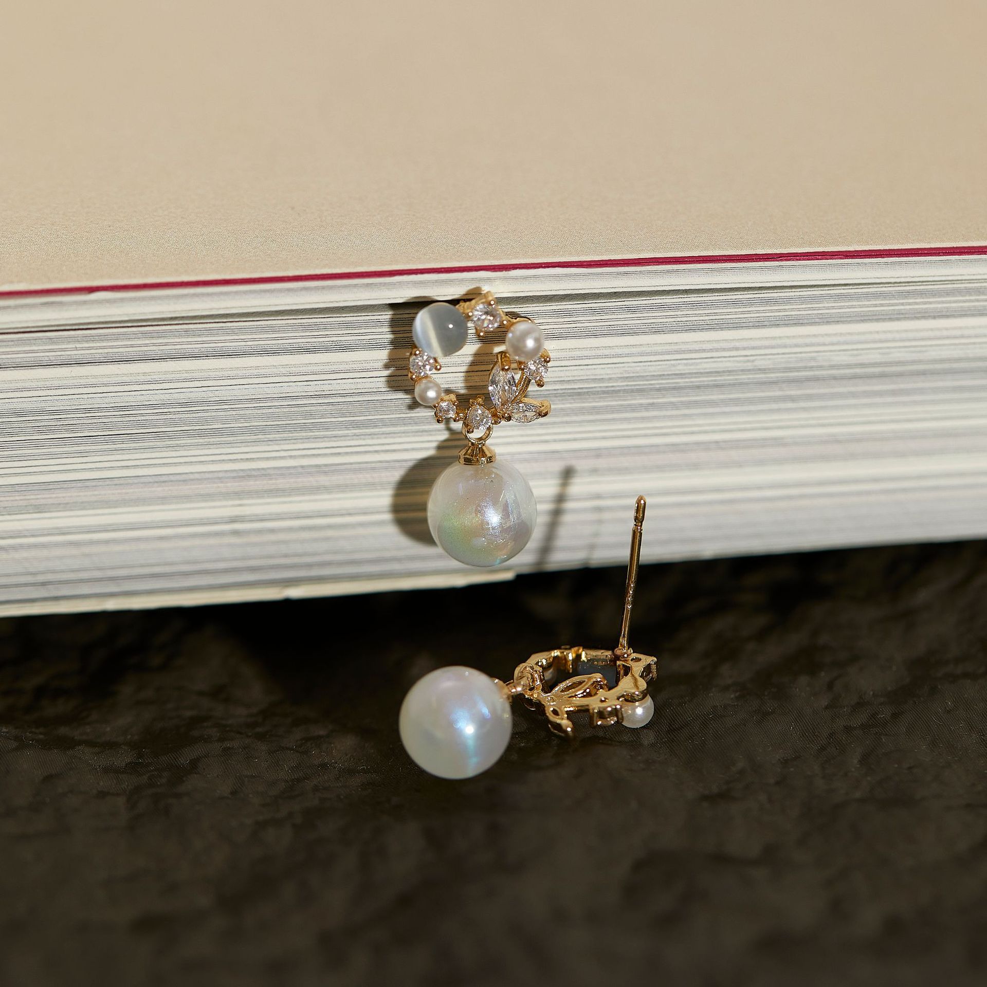 【シャンパンの蝶】高級感真珠猫眼石蝶ピアス
