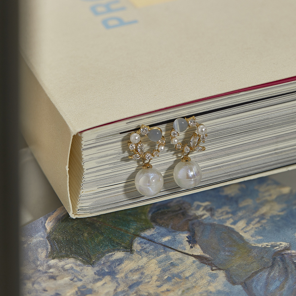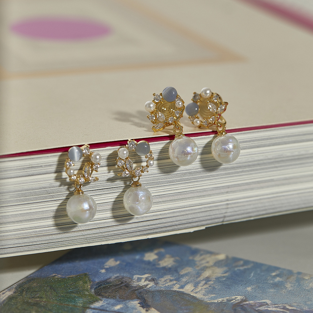 「珠光曲」シンプルで洗練された真珠耳飾り女性秋冬イヤリング無耳洞気質復古蚊取り盤耳クリップ