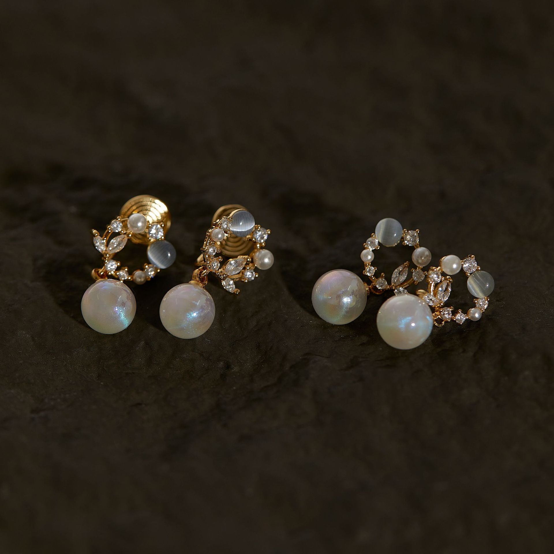 【人魚伝説】花輪夢界人魚姫真珠ペンダント一体蚊取り盤耳クリップ耳穴なし耳飾り