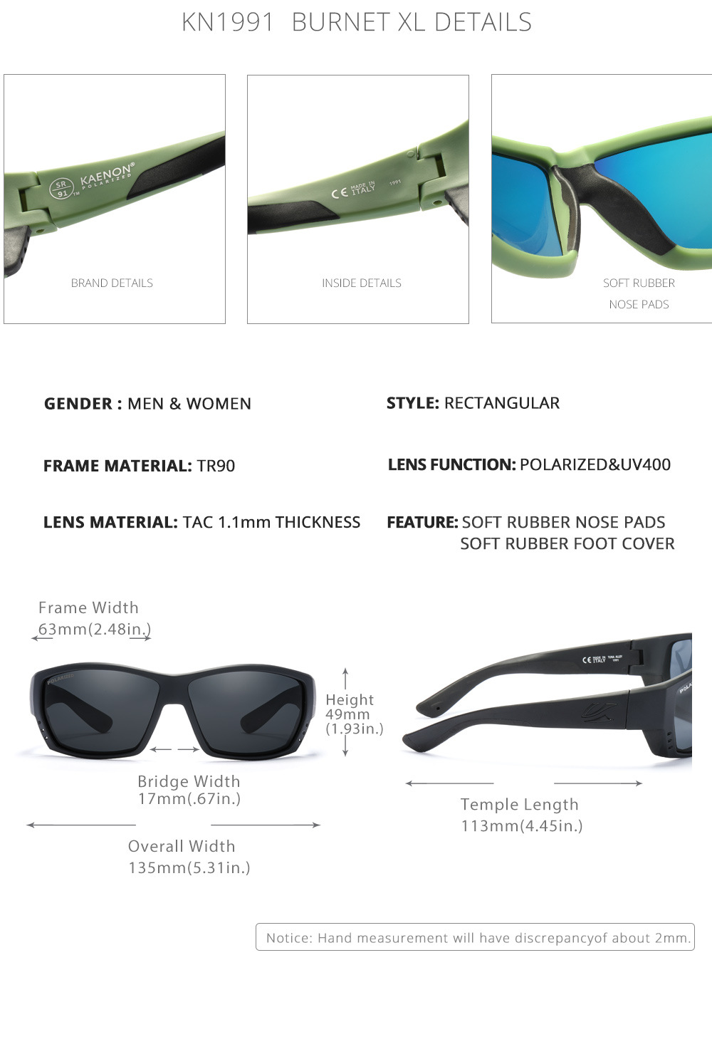 プラスサイズ! KDEAM新品偏光サングラススクエアアウトドアスポーツライディング釣りKD332-PLUS