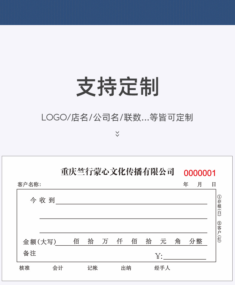 一式二連三連無炭素複写厚厚領収書54K各種類の無炭素伝票手形をカスタマイズして加工することができる