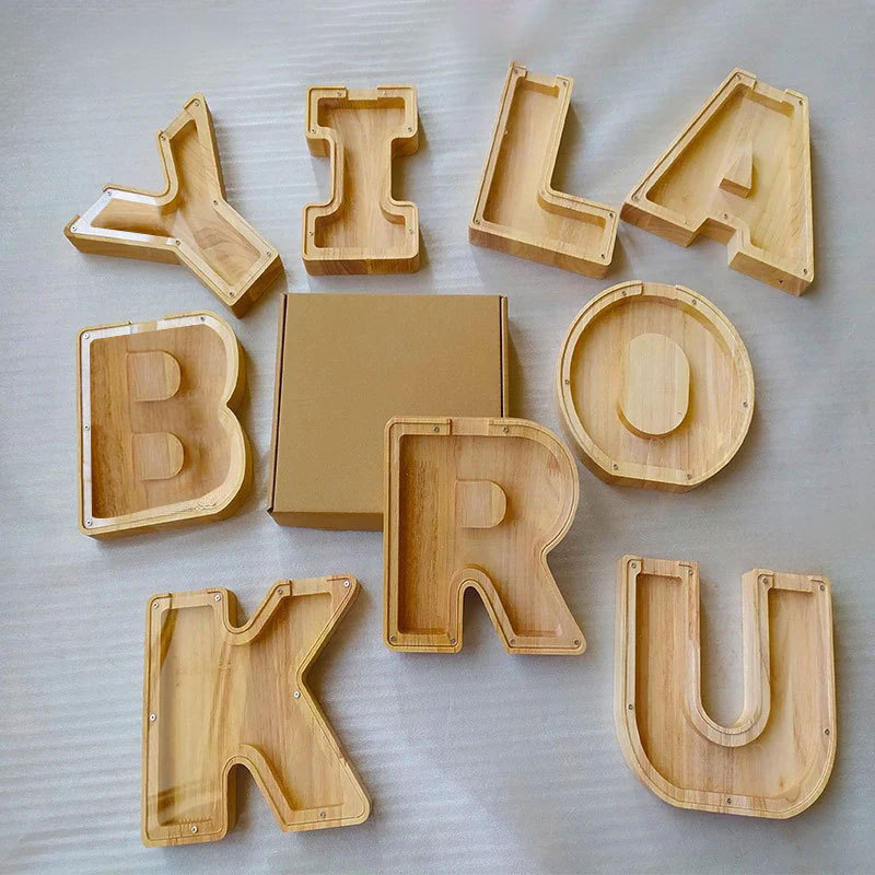 クロスボーダー木製アルファベット貯金箱子供貯金箱置物漫画透明ギフトお年玉貯金箱