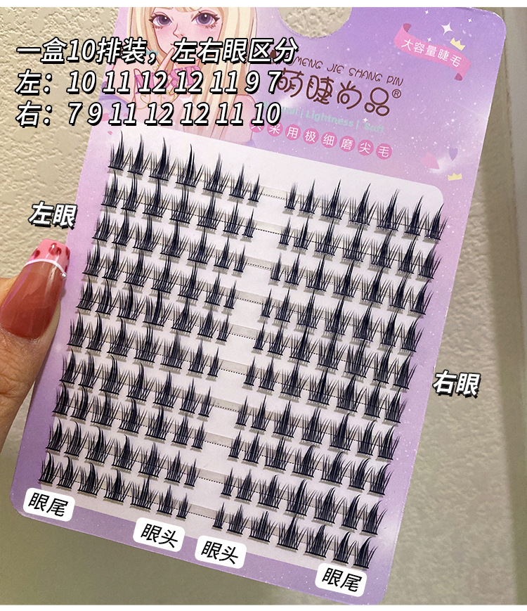 萌えまつげ尚品麦穂まつげ本10列大容量タイプの塔先偽まつげ自然濃密上鏡漫画まつげ