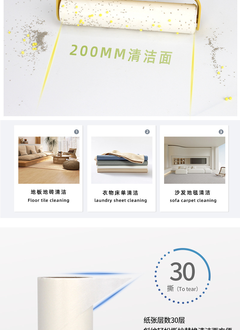 黛丽可儿斜纹好撕杀毒抑菌可拆卸粘毛器滚筒可视宠物地毯除毛衣物