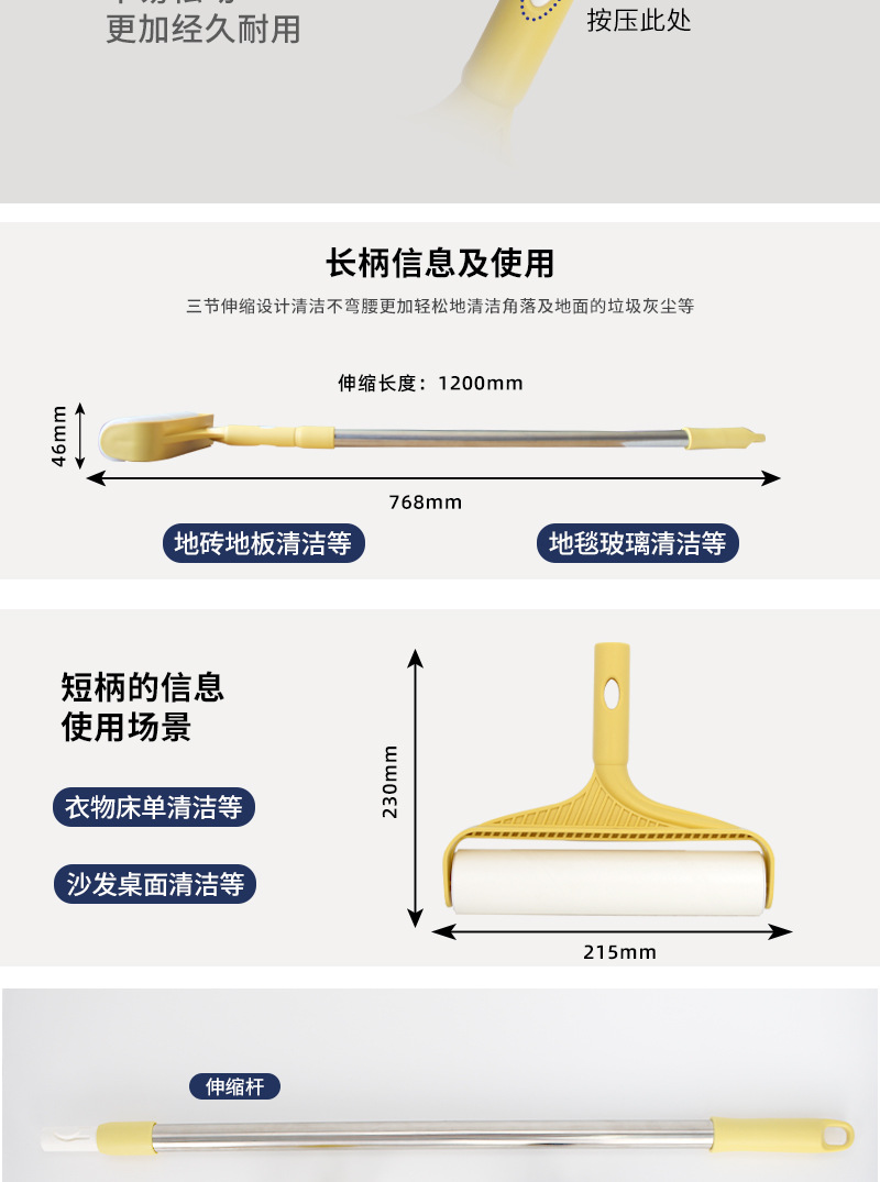 ✅黛丽可儿新品伸缩好撕粘毛器滚筒可视斜撕宠物地毯粘毛衣物除毛