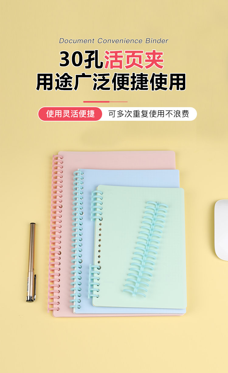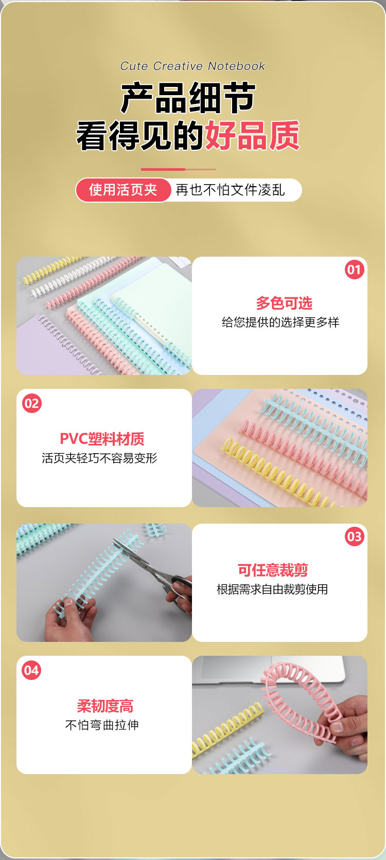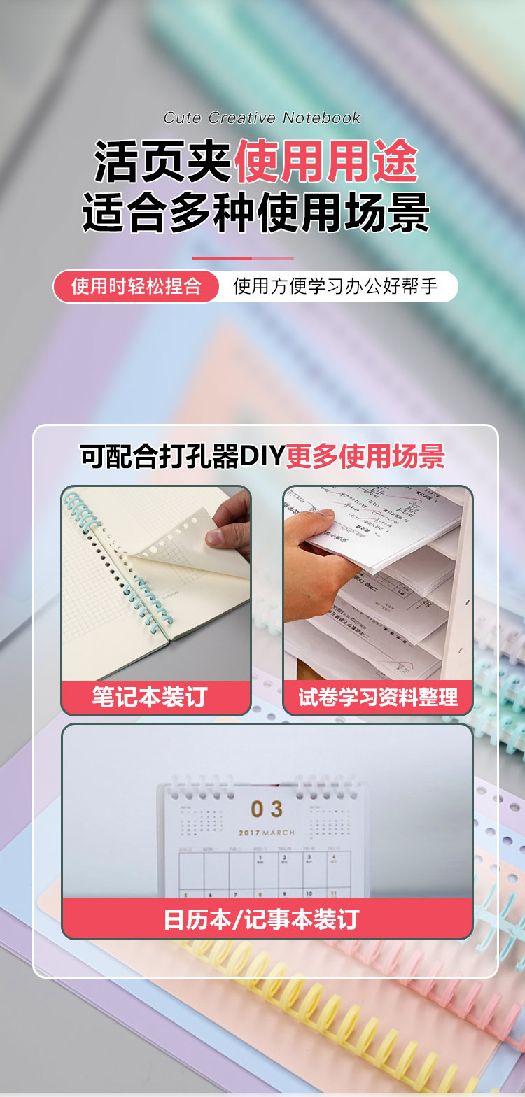 本无忧A4活页线圈30孔装订条塑料活页夹环可拆卸装订夹手账本环扣