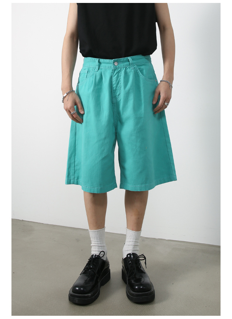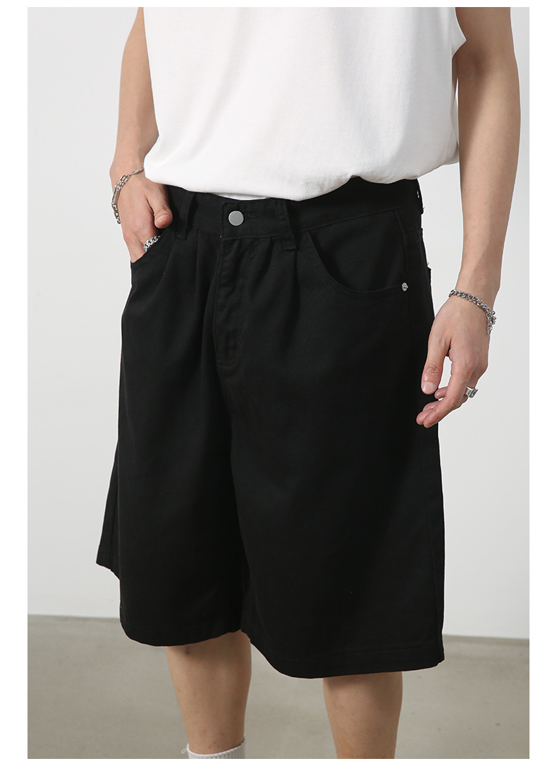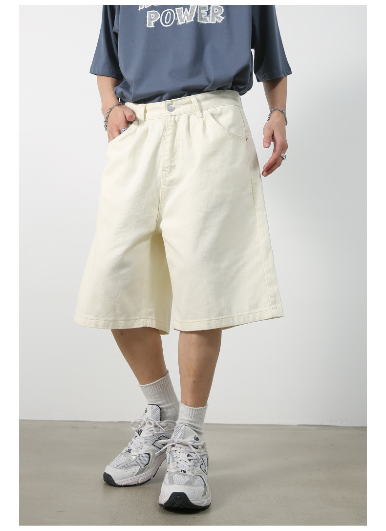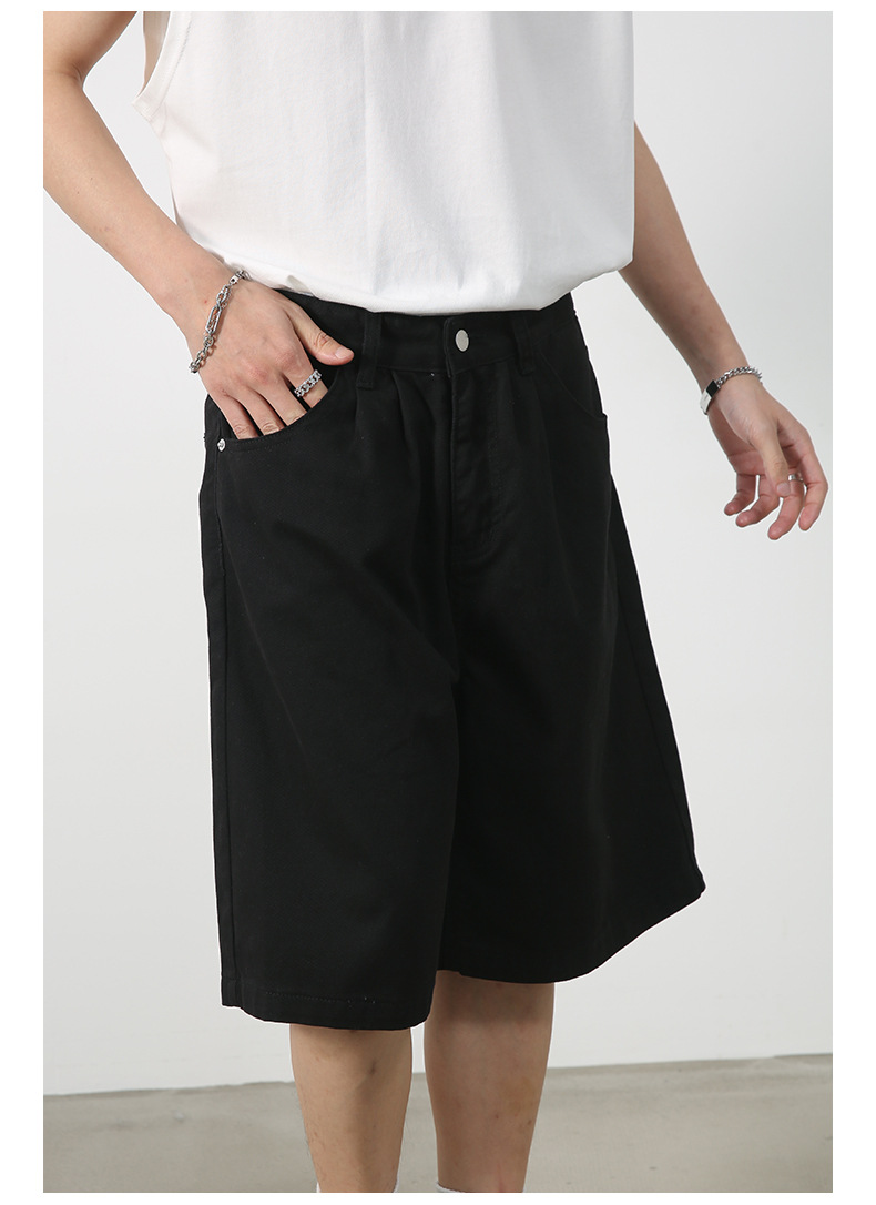nirben | 新しいアメリカンスタイルのルーズワイドレッグクロップドパンツレトロトレンディブランドストレートデニムショートパンツメンズミッドパンツ