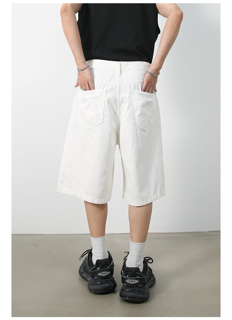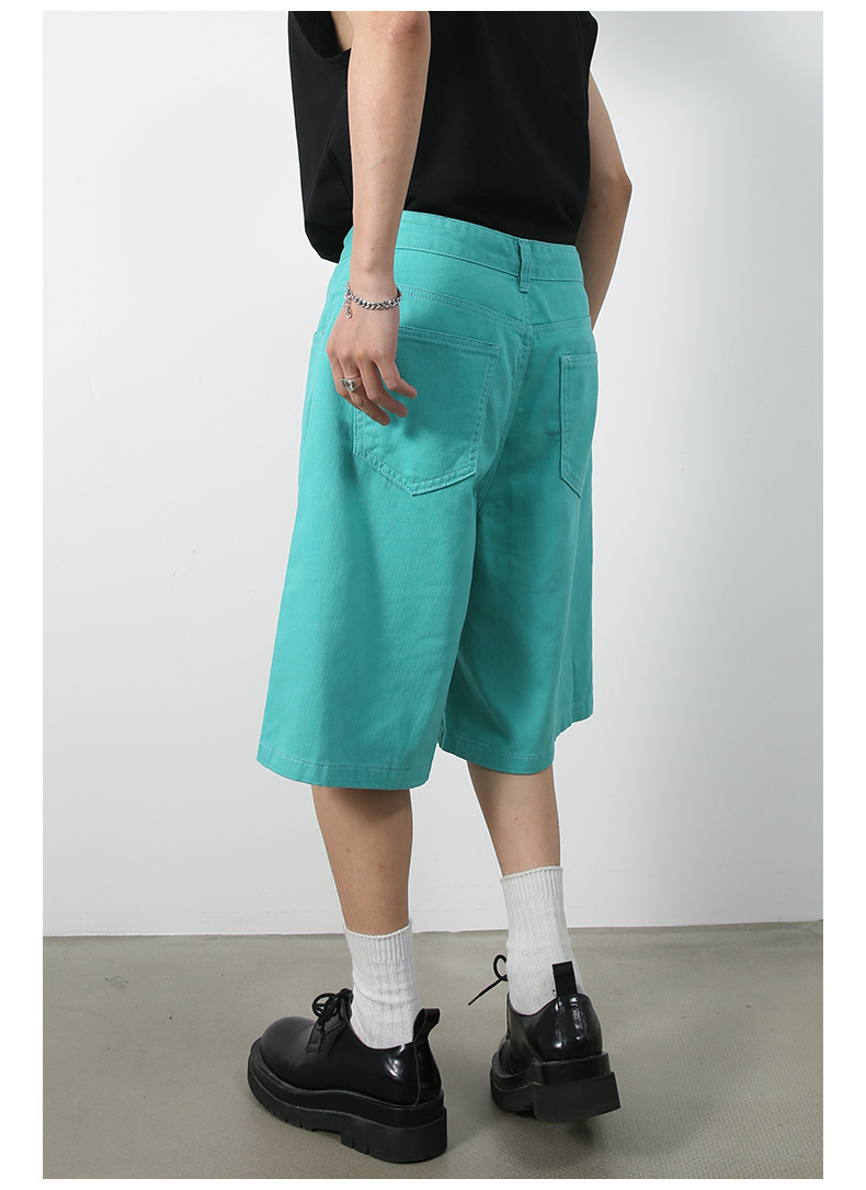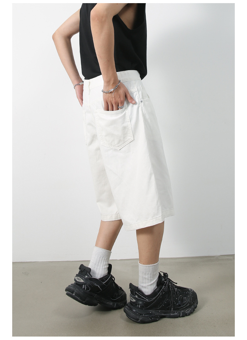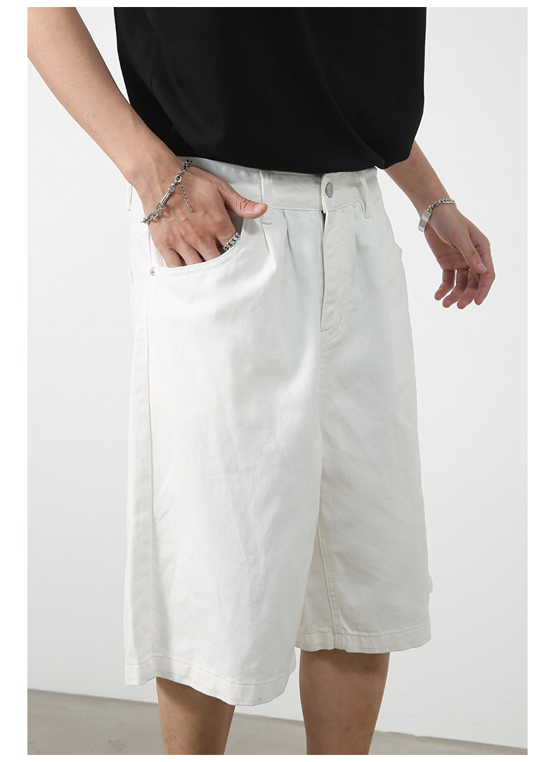 nirben | 新しいアメリカンスタイルのルーズワイドレッグクロップドパンツレトロトレンディブランドストレートデニムショートパンツメンズミッドパンツ