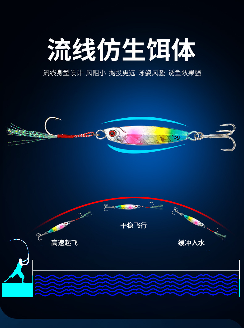 二重フック鉄板シミュレーション魚路亜餌超遠投釣り口シーバスフィッシュ馬口通殺淡水海釣り鉄板
