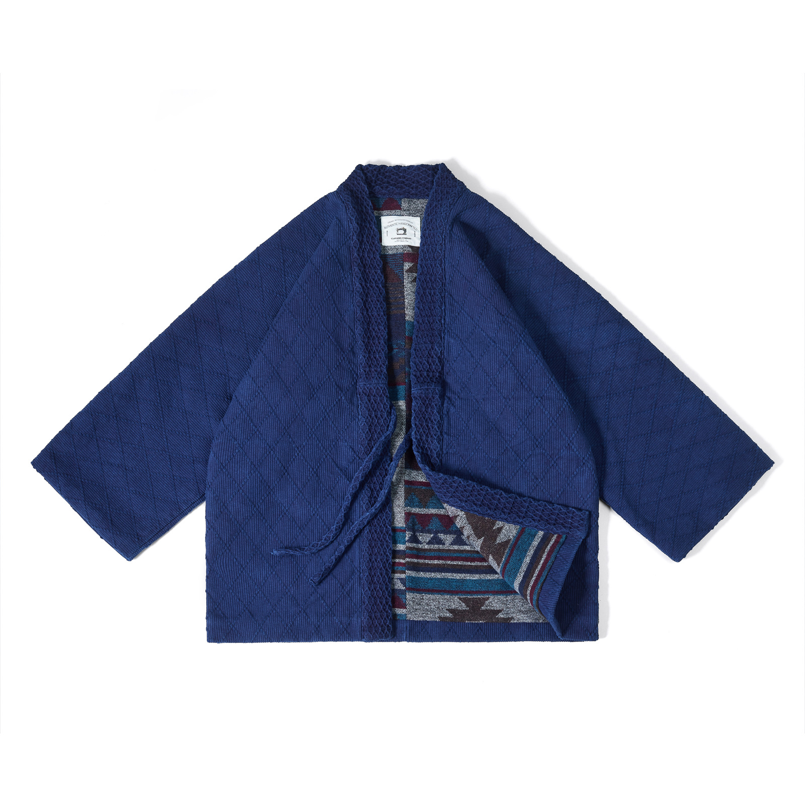 黄氏織造23秋冬新作藍染道長服ジャケットレトロ男性コート手作り植物藍染水洗い