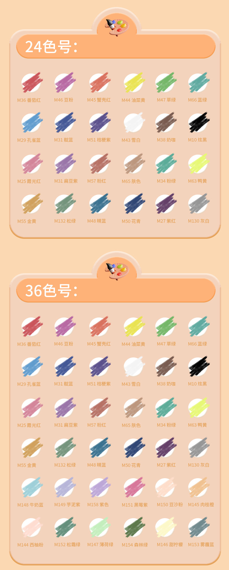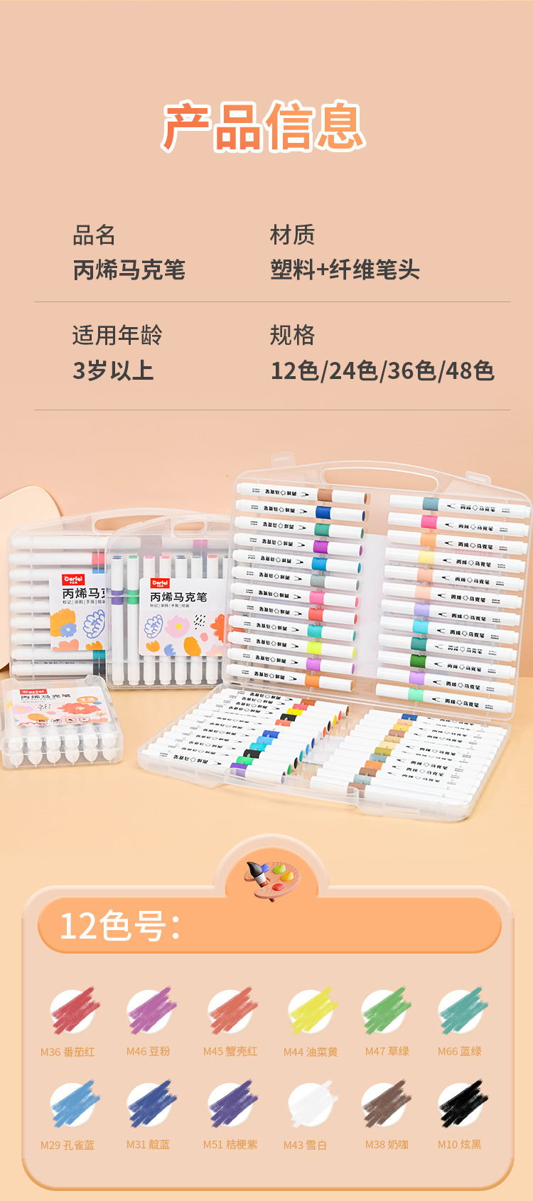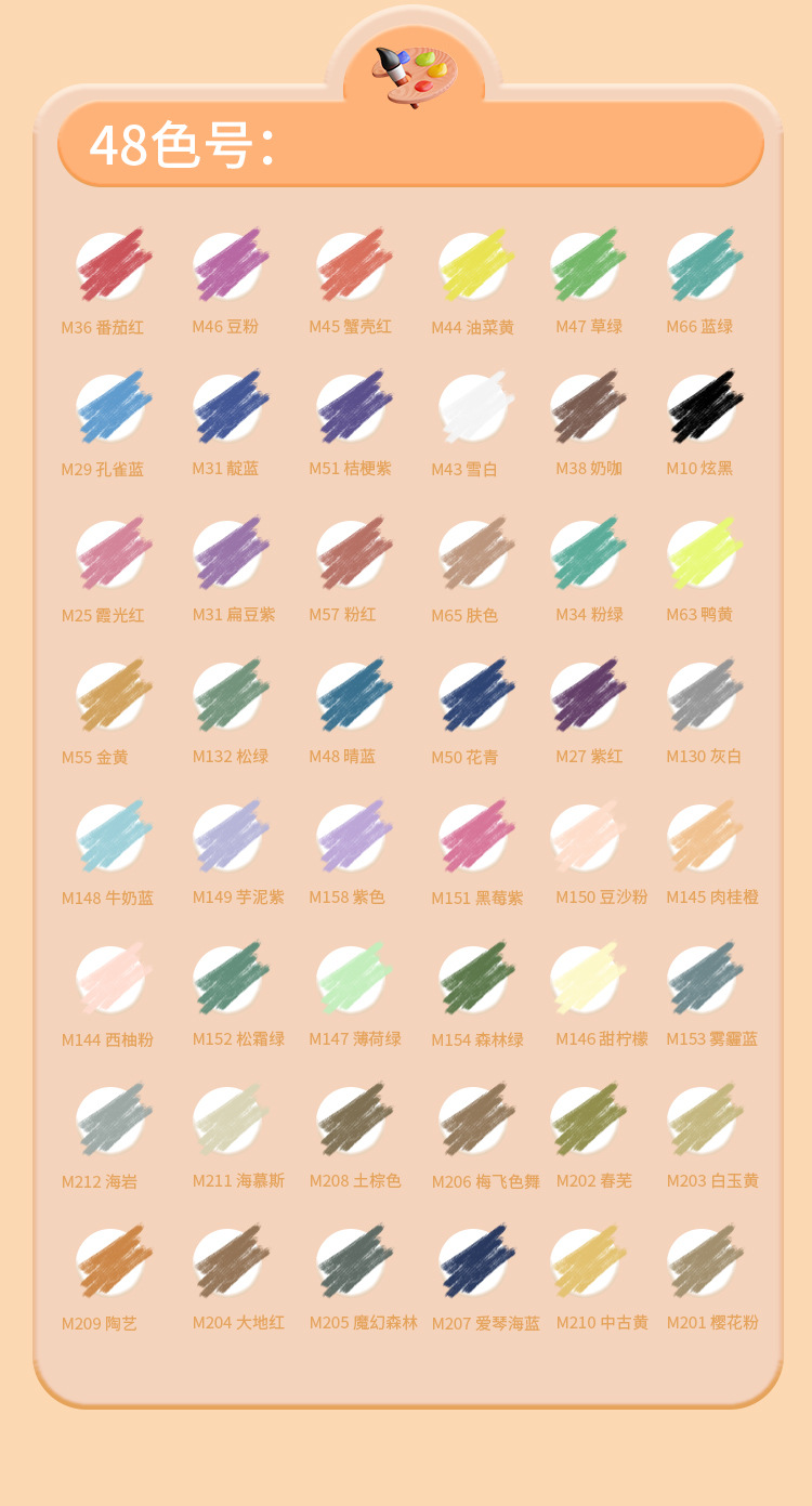 48色 装箱数:36盒 0.55KG/盒 24.5kg/箱 64*50.5*31.5cm