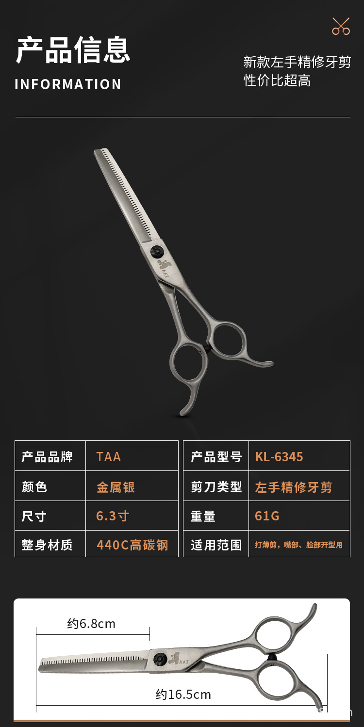 台湾tataその他その左手ペット美容はさみ6.3インチKL-6345ペットショップ用歯切り440cスチール