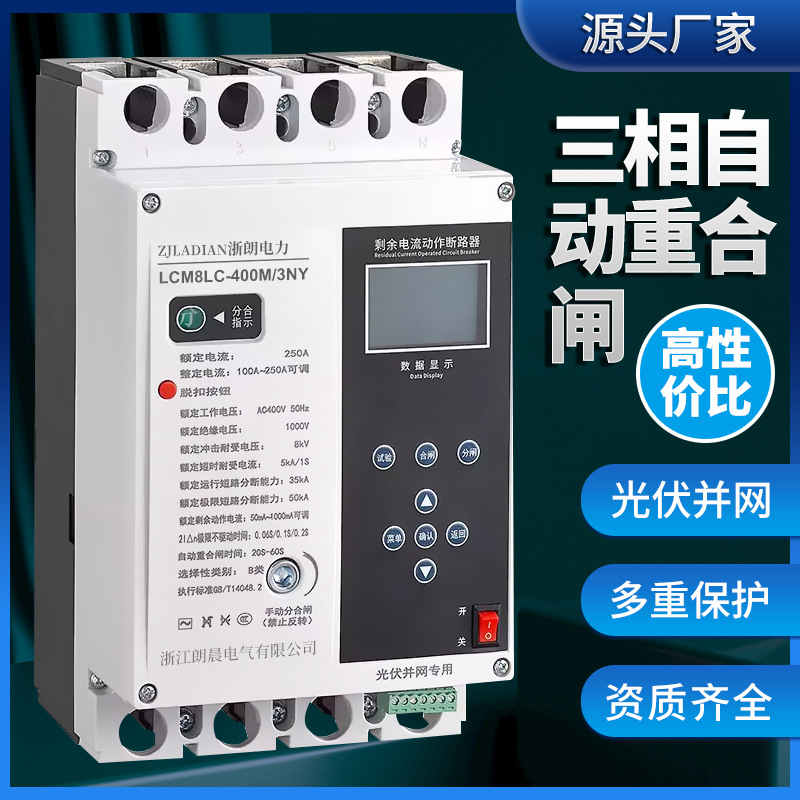 光伏自动重合闸断路器三相380V大功率漏电保护缺相过欠压并网专用