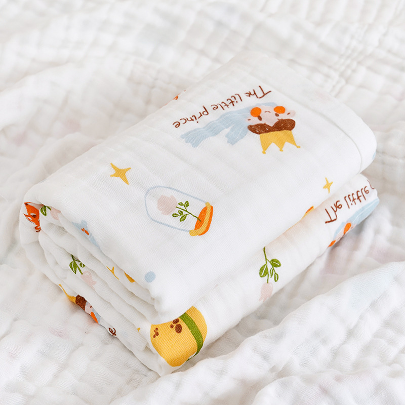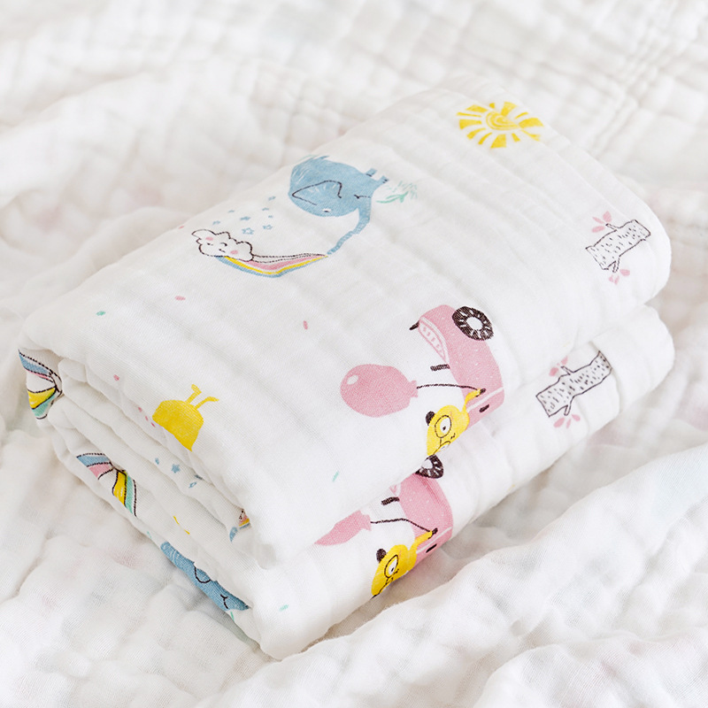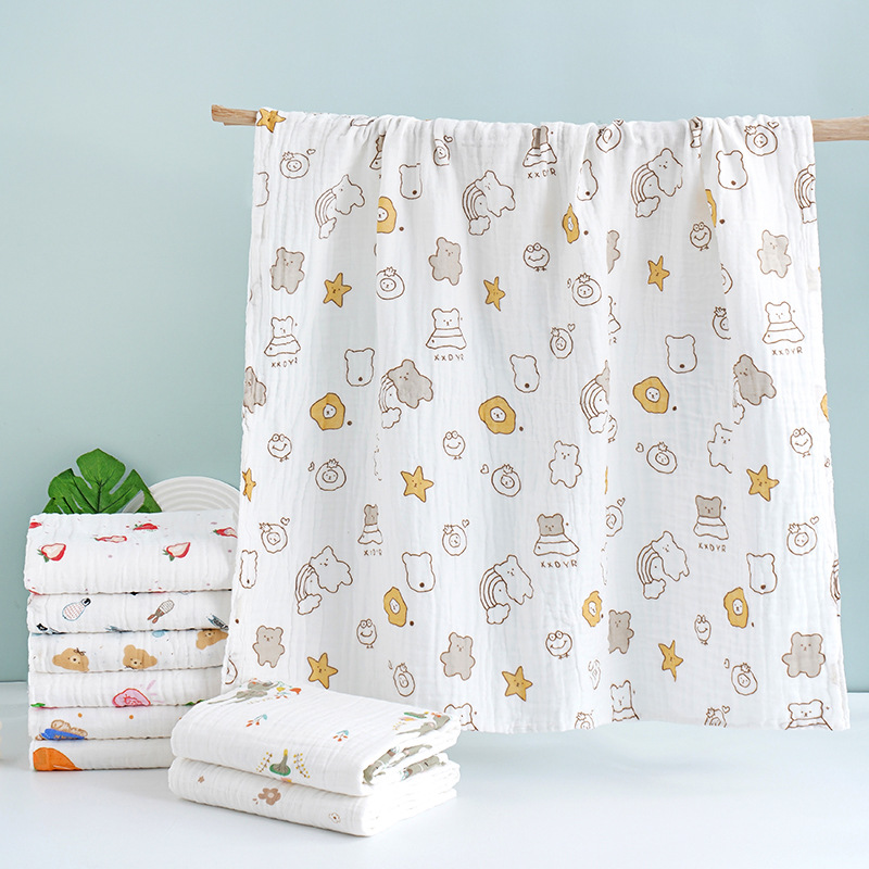 六層ガーゼ純綿子供が抱かれてしわタオルが泡糸バスタオル漫画プリント毛布110*110