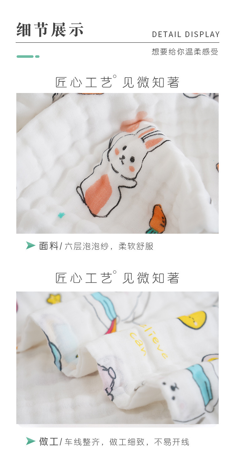 卸売り泡ガーゼ児童はバスタオルで6層ガーゼバスタオル無地児童は110*110のタオル毛布を厚くした