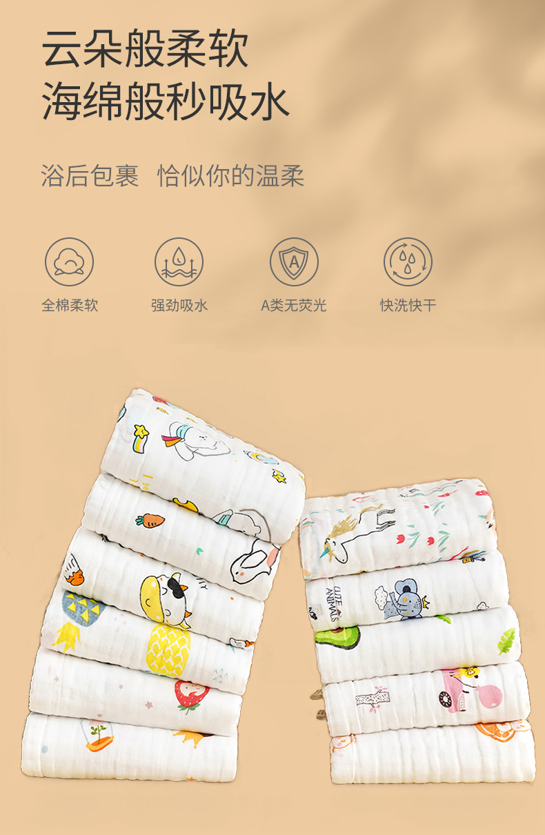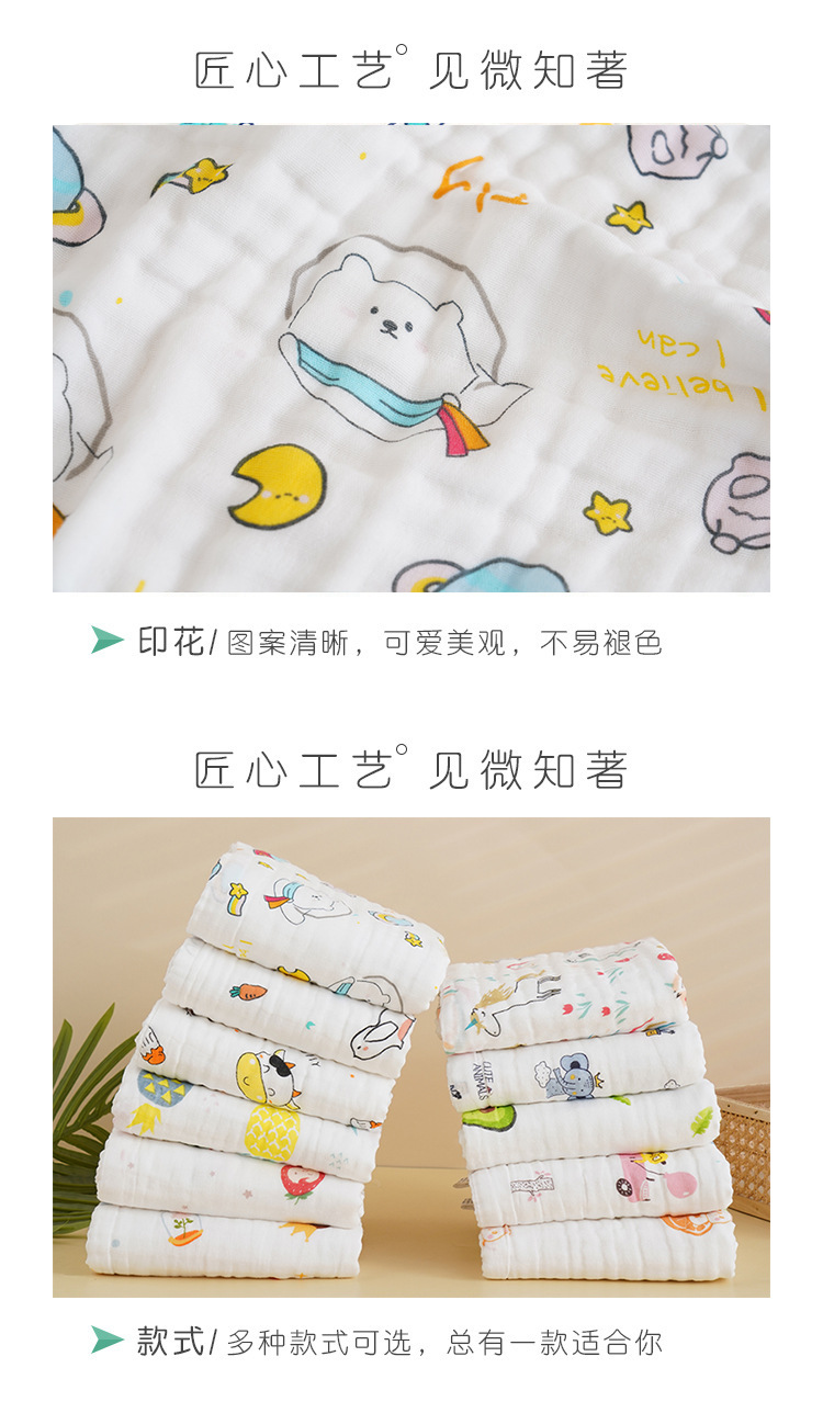 新生児ガーゼ四角タオル六層ガーゼタオルよだれタオル赤ちゃん洗面タオル子供ハンカチ小方タオル