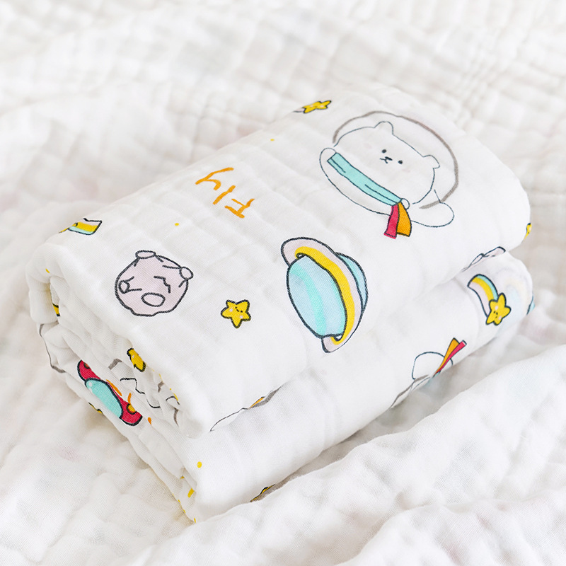 新生児の子供用のベビーガーゼのバスタオルのガーゼの布の布のプリントの漫画の二重の抱っこは毛布の布団をかぶせます。