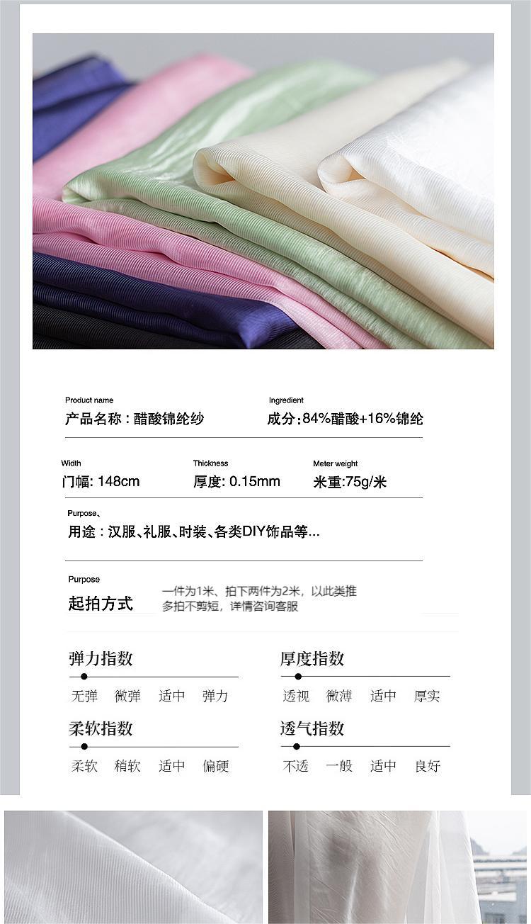 高級酢酸メッシュ生地半透ワンピースドレス漢服手作りメッシュデザイナー服装横柄生地