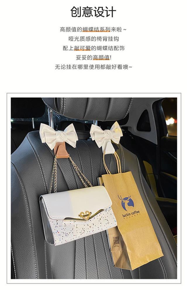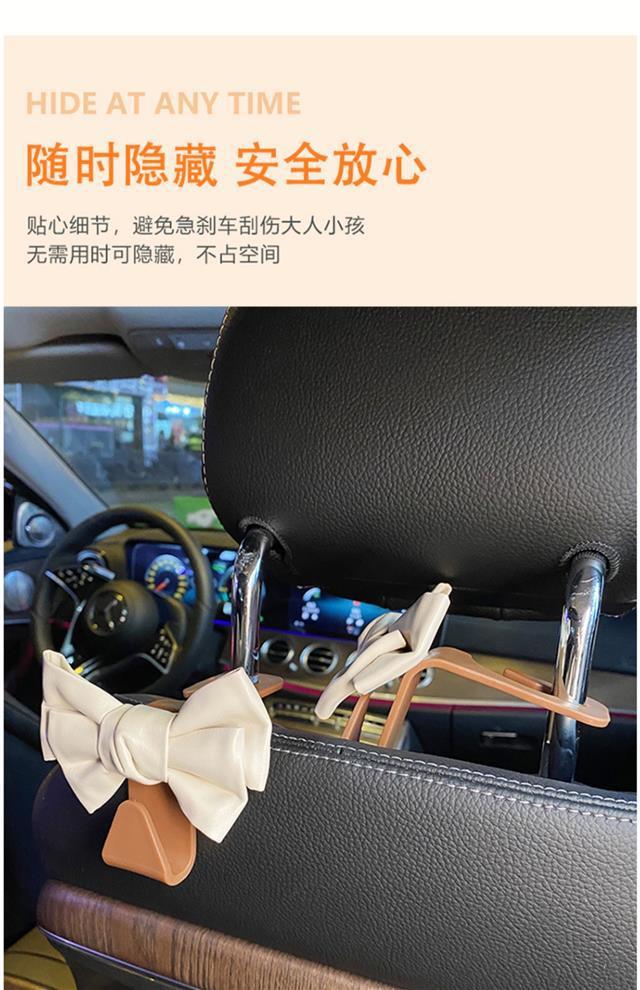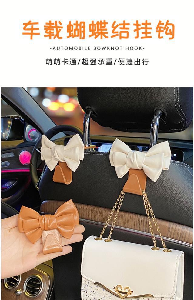 汽车挂钩椅背挂钩高档网红皮革可爱蝴蝶结多功能车内置物小挂钩