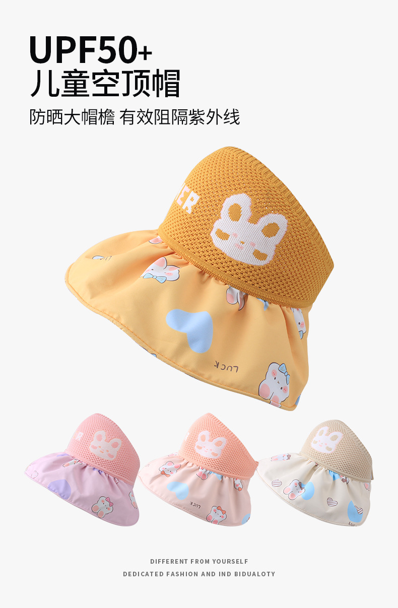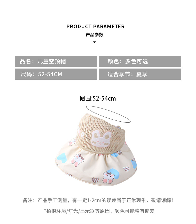 2023新品夏ニットプリントカラーゴム空トップ女の子サンダル日焼け止め日よけ帽子サンバイザー子供用帽子