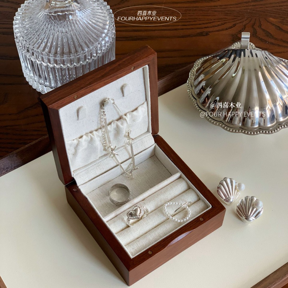 四喜木業木質アクセサリーケース実木収納ケースアクセサリーケースアクセサリーネックレスアクセサリーレトロベゴニアガラス