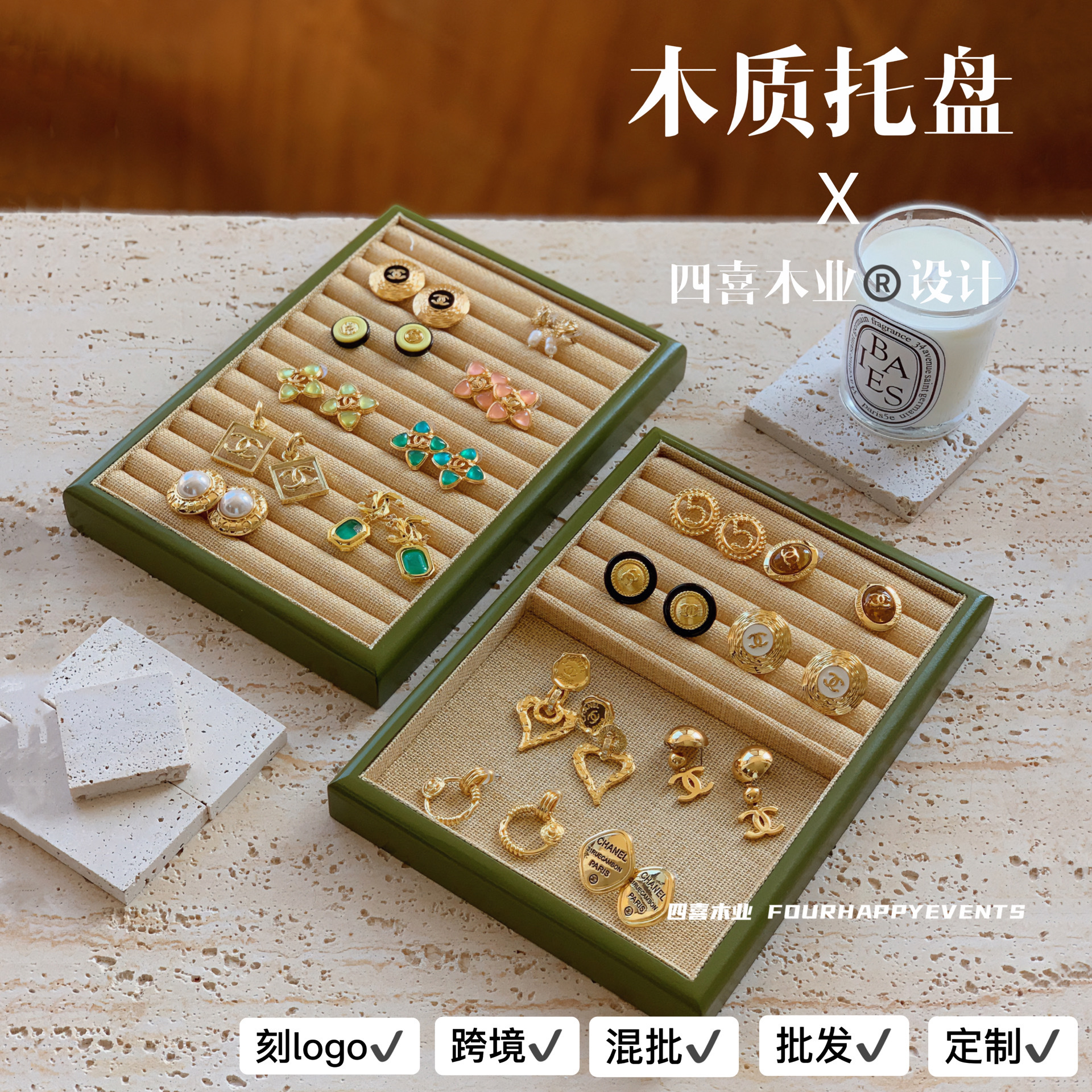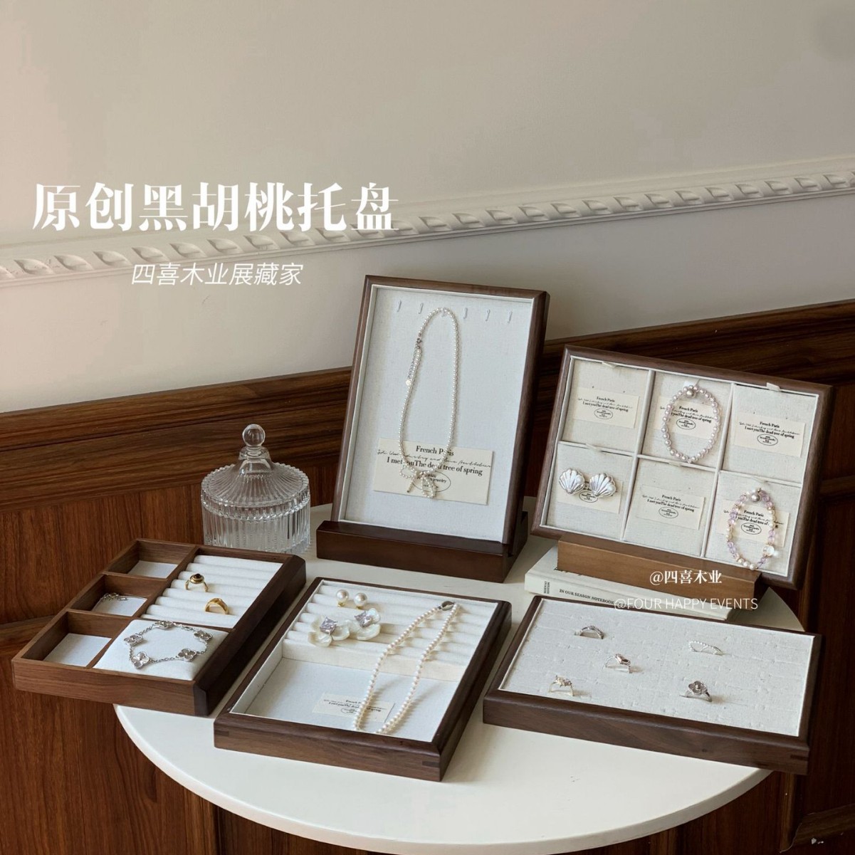 四喜木業木製アクセサリー盤トレージュエリー指輪ネックレス陳列展示盤展示棚撮影